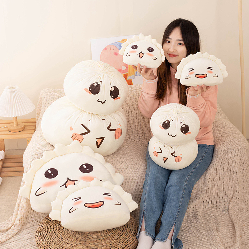 Dumpling boneka roti kukus, bantal makanan anak-anak, grosir mainan mewah, dekorasi sofa, boneka hadiah