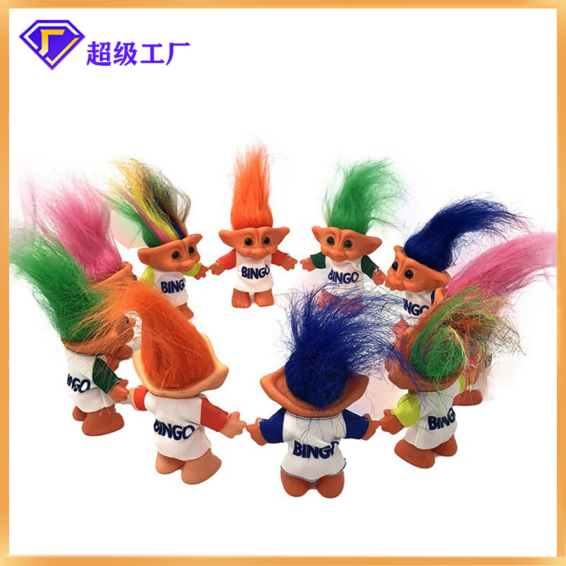 Boneka troll lintas batas 80 s nostalgia 10cm bercetak dua sisi boneka vinil pabrik penjualan langsung