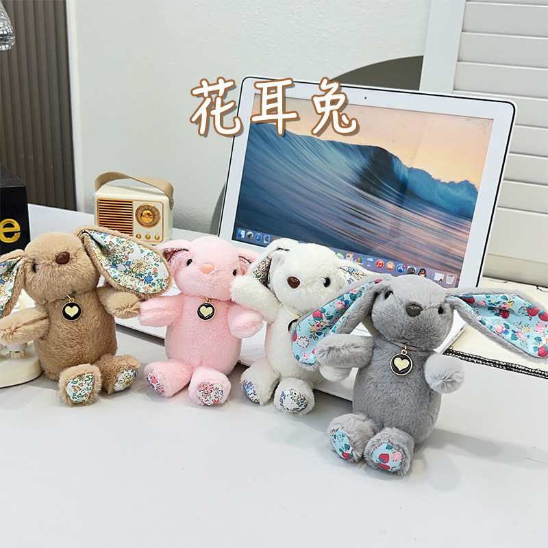 Boneka kelinci gantung berbulu dengan telinga yang menjuntai, boneka lucu untuk tas ransel, gantungan kunci boneka kecil trendi aksesori grosir