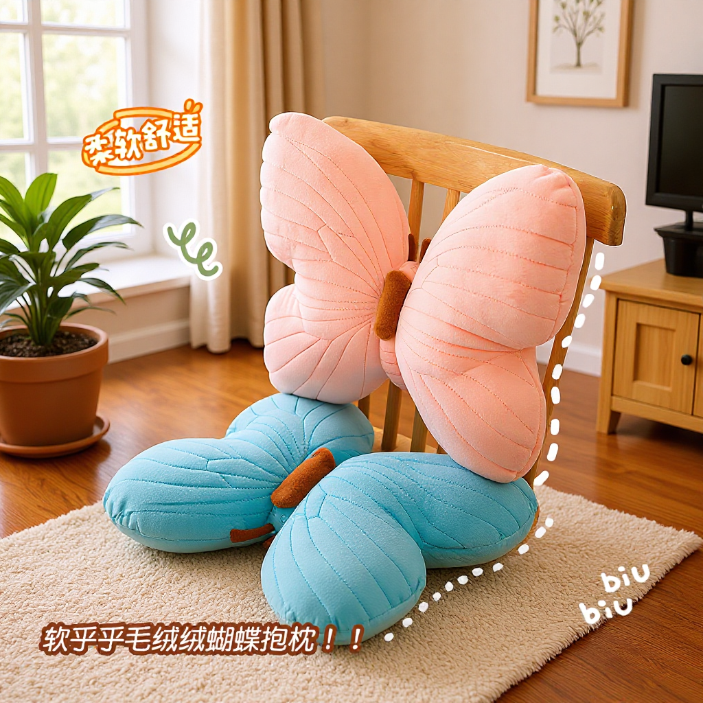 Bantal Kupu-Kupu Hati Gadis Lintas Batas Mainan Beludru Bantal Sandaran Bantal Kantor Estetika Rumah Bantal Kreatif Ulang Tahun