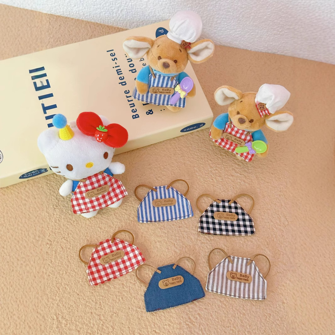 Spot Tersedia Celemek DIY Pakaian Boneka 10cm Pakaian Boneka Mini Celemek Kotak-kotak Boneka