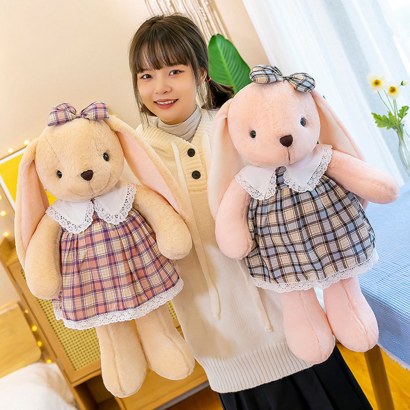 Rok kotak-kotak baju baru lintas batas mainan kelinci boneka kelinci antik hadiah boneka kain bantal