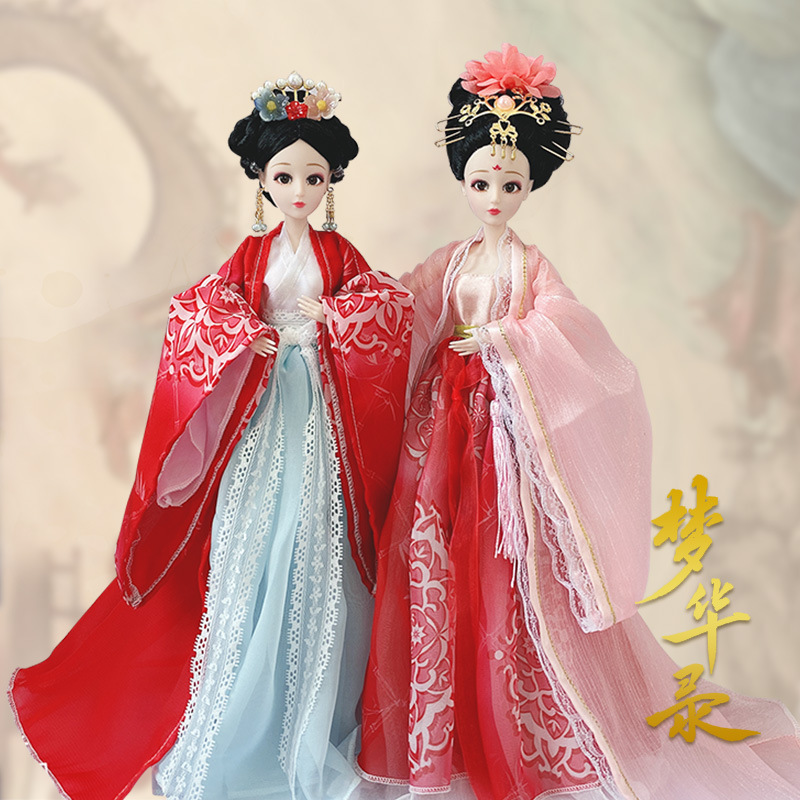 Boneka kostum kuno realistis 60cm lintas batas, mainan anak-anak Hanfu gaya kuno, set boneka putri perempuan.