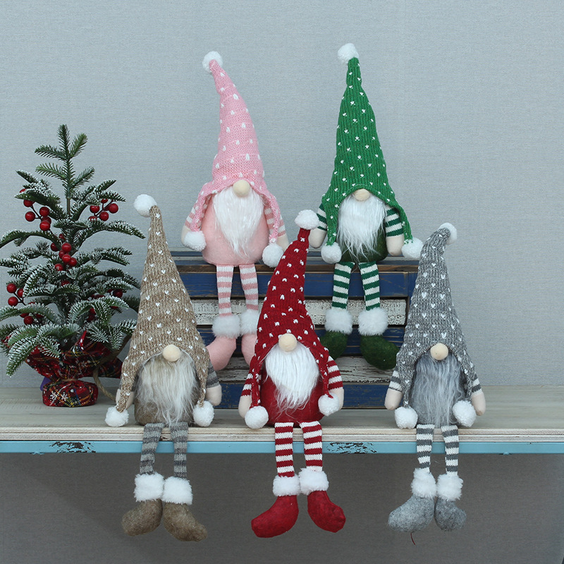 Perlengkapan dekorasi Natal baru lintas batas boneka tanpa wajah kaki panjang rajut dekorasi meja boneka kurcaci
