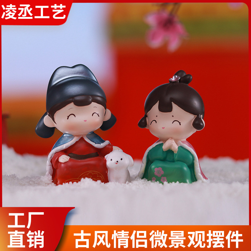 Dekorasi Mobil pasangan gaya kuno kuda bambu Plum hijau dekorasi lanskap mikro boneka buatan tangan figur resin