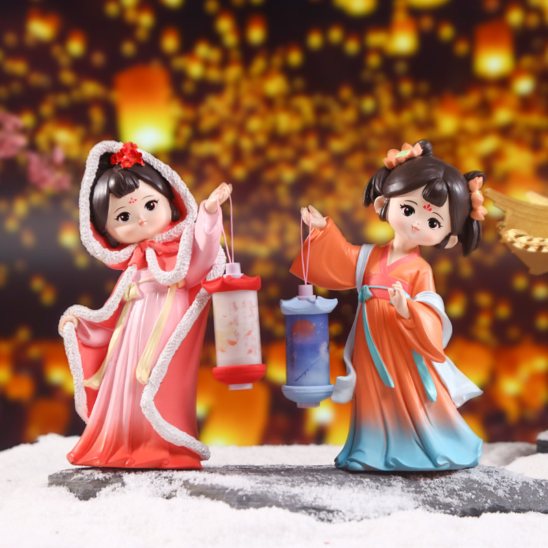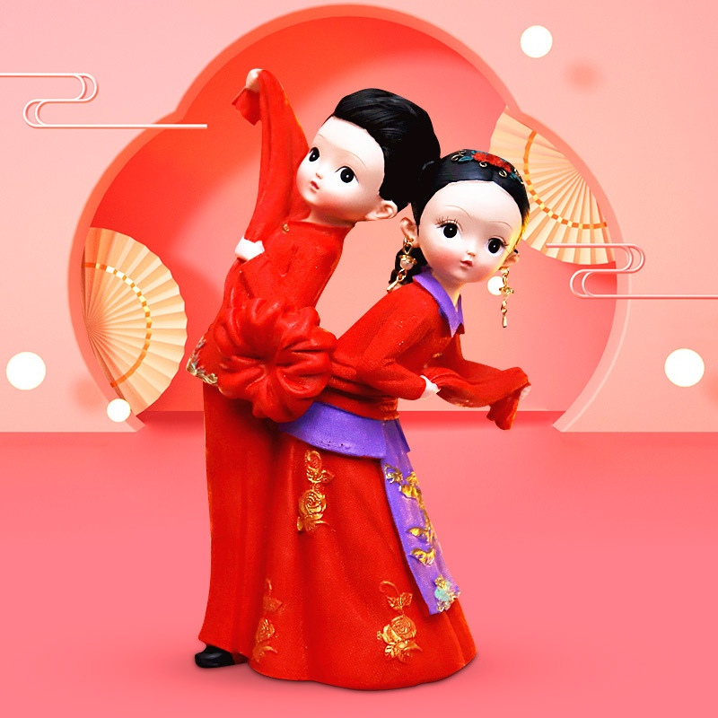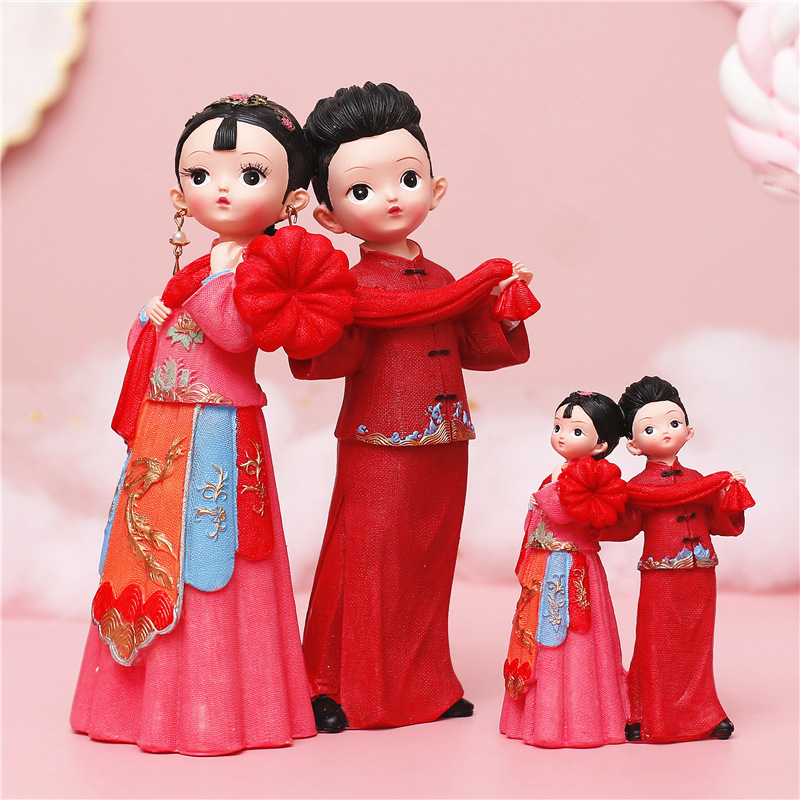 Hadiah kreatif kostum kuno Hanfu giok emas Liangyuan dekorasi pernikahan boneka kuno nakal pasangan dekorasi gaya Cina