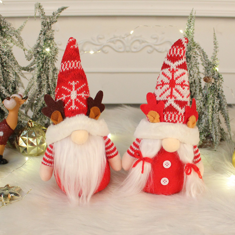 Amazon boneka tanduk salju, dekorasi Natal boneka tanpa wajah rajut Nordik Cangyan 202