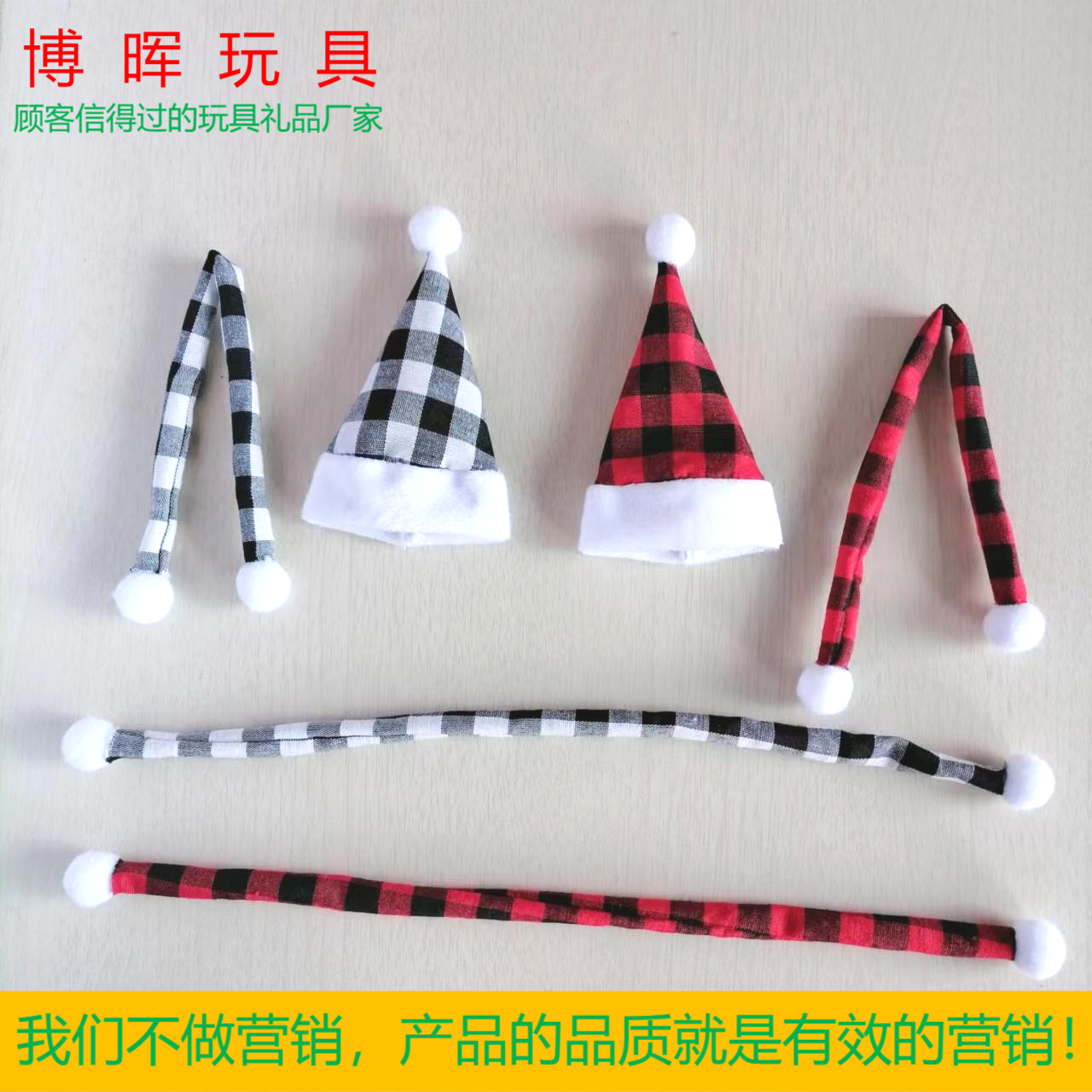 Topi Natal kotak-kotak baru dekorasi boneka buket botol anggur Natal setelan syal topi kotak-kotak mini merah dan hitam