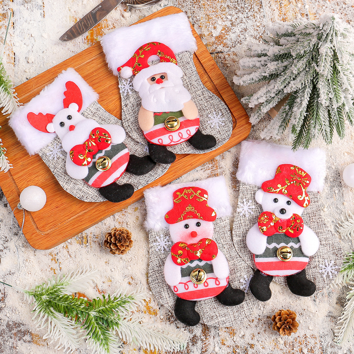 Kaus Kaki Boneka Natal Lintas Batas Kaus Kaki Natal Mewah Kartun Gantung Pohon Natal Tas Hadiah Permen Manusia Salju Santa
