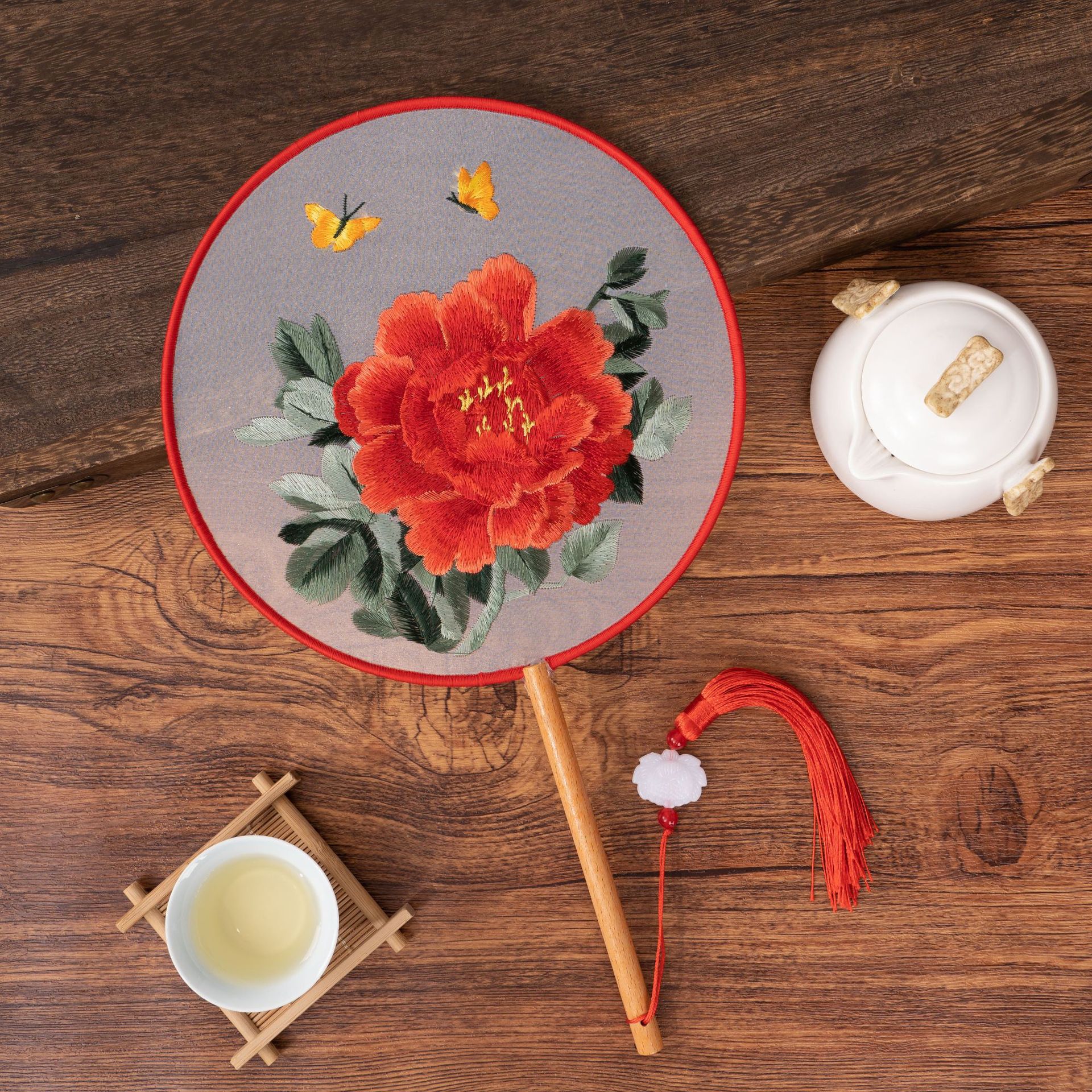 古风扇子儿童舞蹈扇汉服拍照中式扇子绫绢刺绣中国风女孩团扇