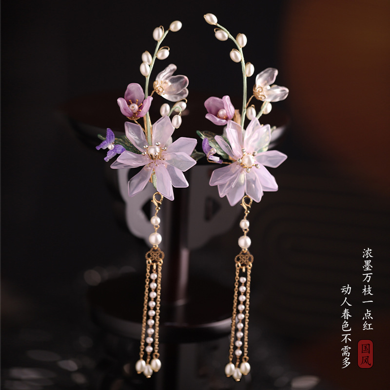 Hanfu hiasan kepala jepit rambut anak perempuan, aksesori rambut kuno jepit rambut gaya Tiongkok, rumbai langkah goyang