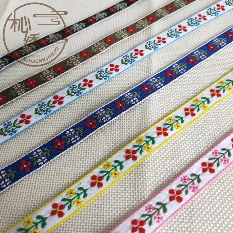 Tersedia grosir gaya kuno hanfu boneka aksesoris pakaian DIY indah pastoral bunga bordir 1.2cm katun jacquard pita