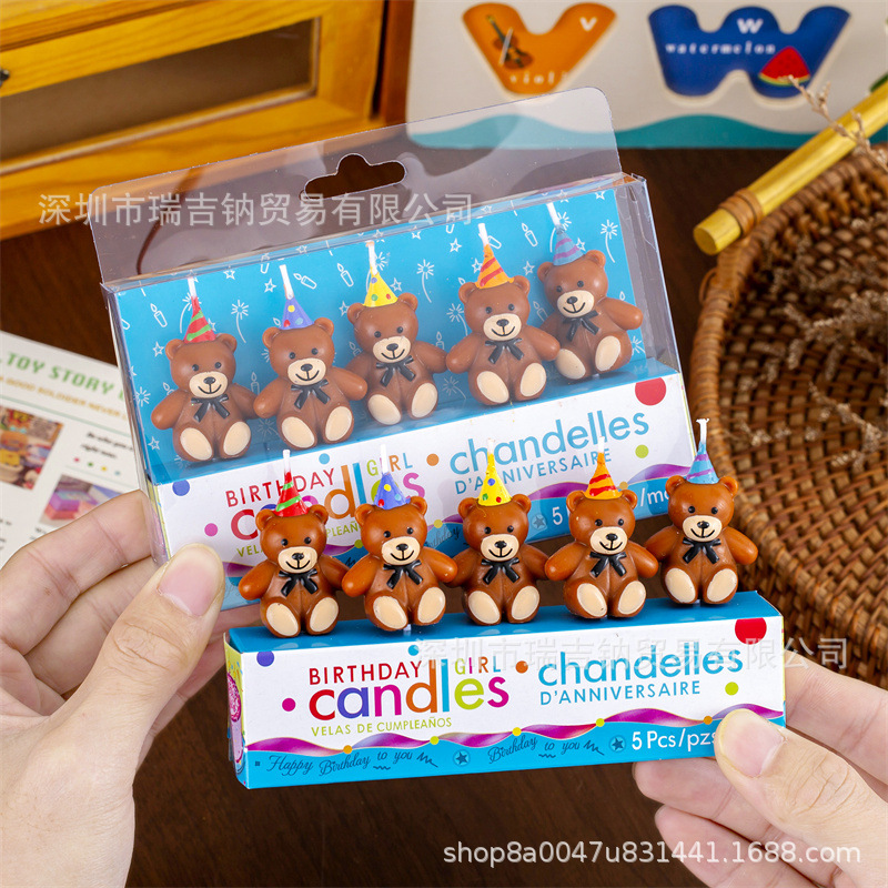Gaya Korea ins topi antik beruang lilin ulang tahun kue Dekorasi lilin hari anak-anak lilin merah jaring