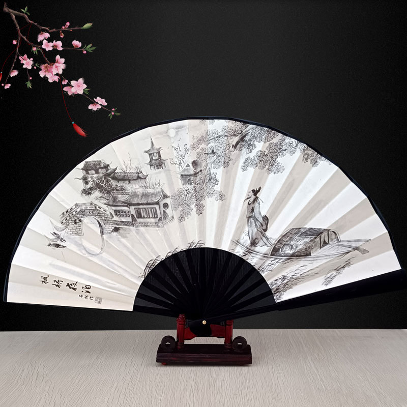Kipas lipat gaya kuno 10 inci kipas pembersih kain sutra bambu kipas gaya Cina pria lukisan lanskap kipas hadiah pasokan kios grosir