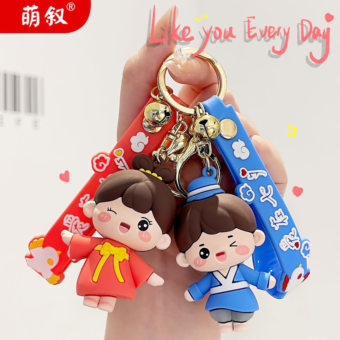 Gantungan kunci pasangan antik perempuan liontin tas boneka tiga dimensi lucu gantungan kunci mobil hadiah Hari Valentine grosir
