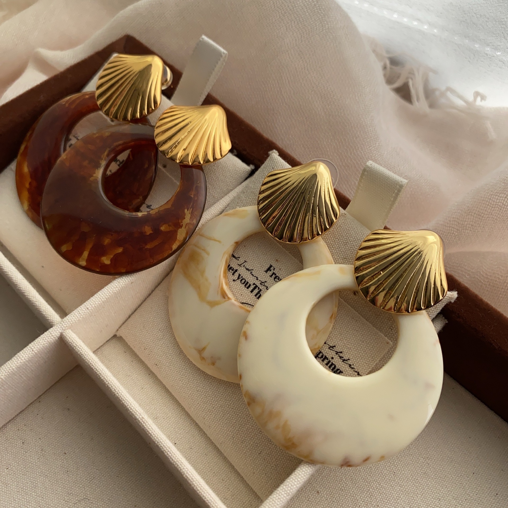 Anting-anting model sehari-hari modis gaya Hong Kong abad pertengahan retro desain khusus ceruk bulat oval anting-anting desain Perancis