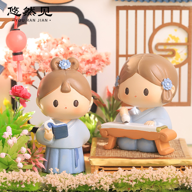 Boneka resin hadiah kreatif anak perempuan imut gaya kuno mode Nasional dekorasi kamar anak-anak rumah buatan tangan