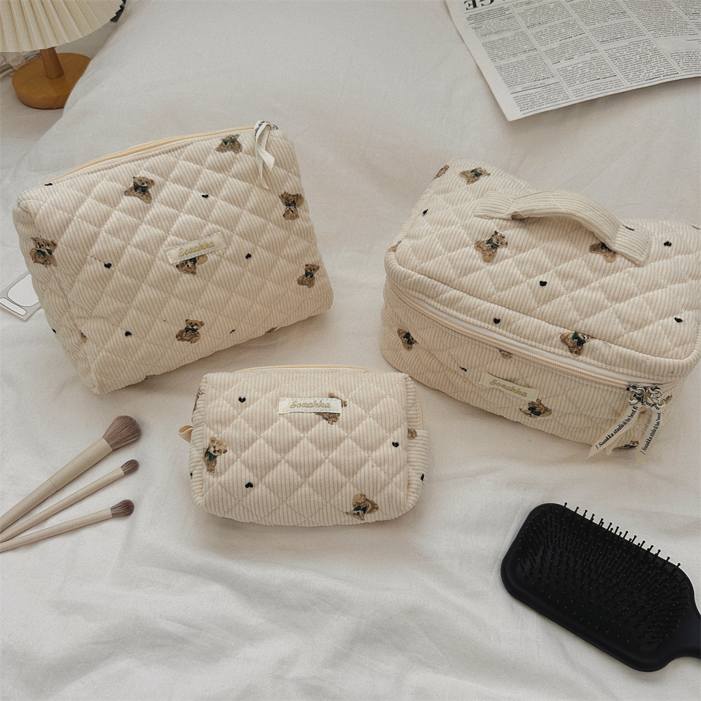 41012 Tas Penyimpanan Beruang Kecil Retro Set Tiga Potong Kantong Pensil Kapasitas Besar Lembut Tas Kosmetik Perjalanan Portabel Tas Penyimpanan