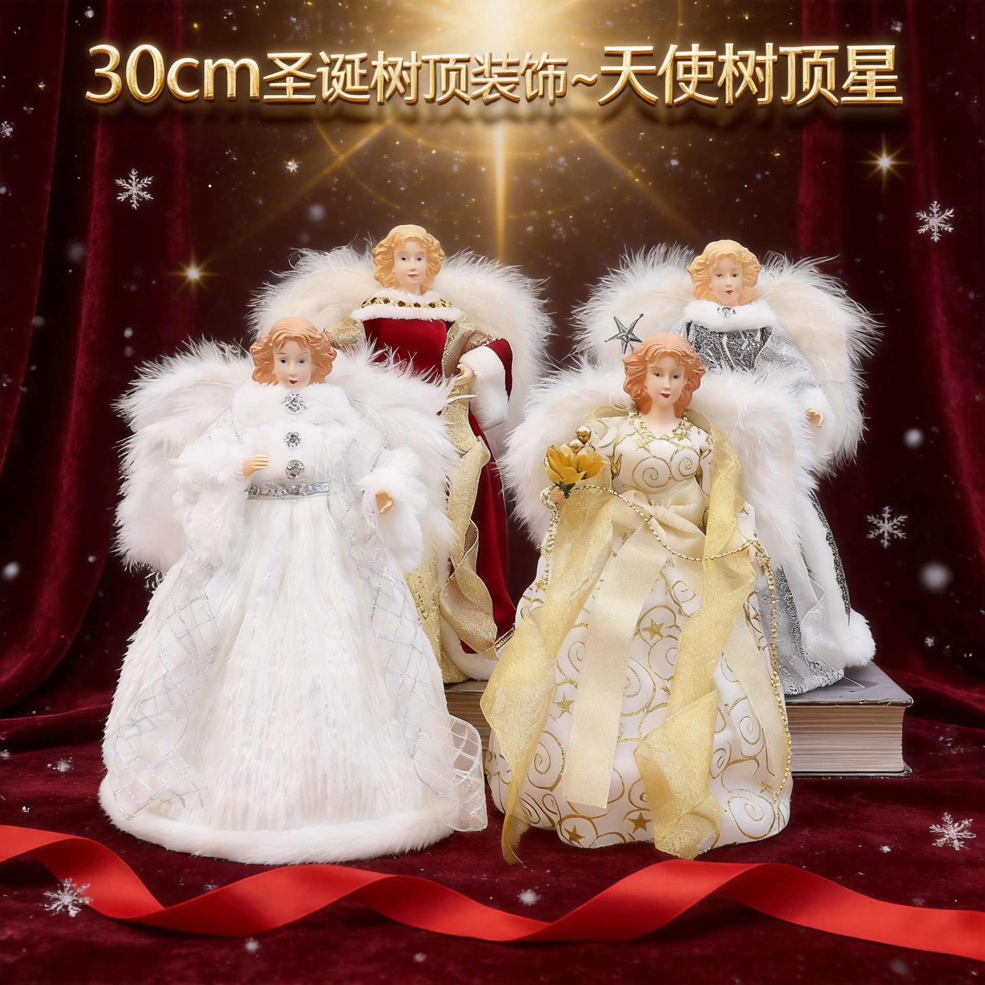 Dekorasi puncak pohon Natal Malaikat Natal sayap mewah baru sayap Natal pabrik Natal