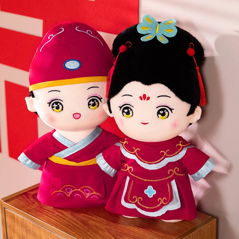Sepasang Hadiah Pernikahan Boneka Menekan Gaya Kuno Bantal Pernikahan Boneka Fuwa di Tempat Tidur Gaya Tiongkok Bantal Bayi di Ruang Pernikahan
