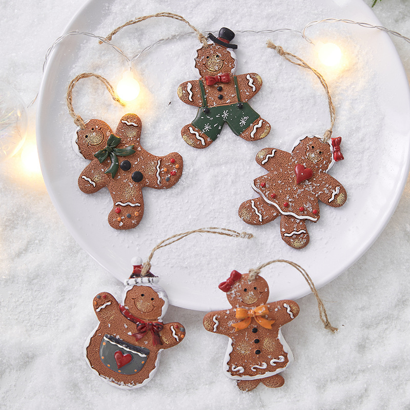 Dekorasi liburan Natal liontin dekorasi pemandangan rumah resin Natal aksesori liontin boneka pria panekuk