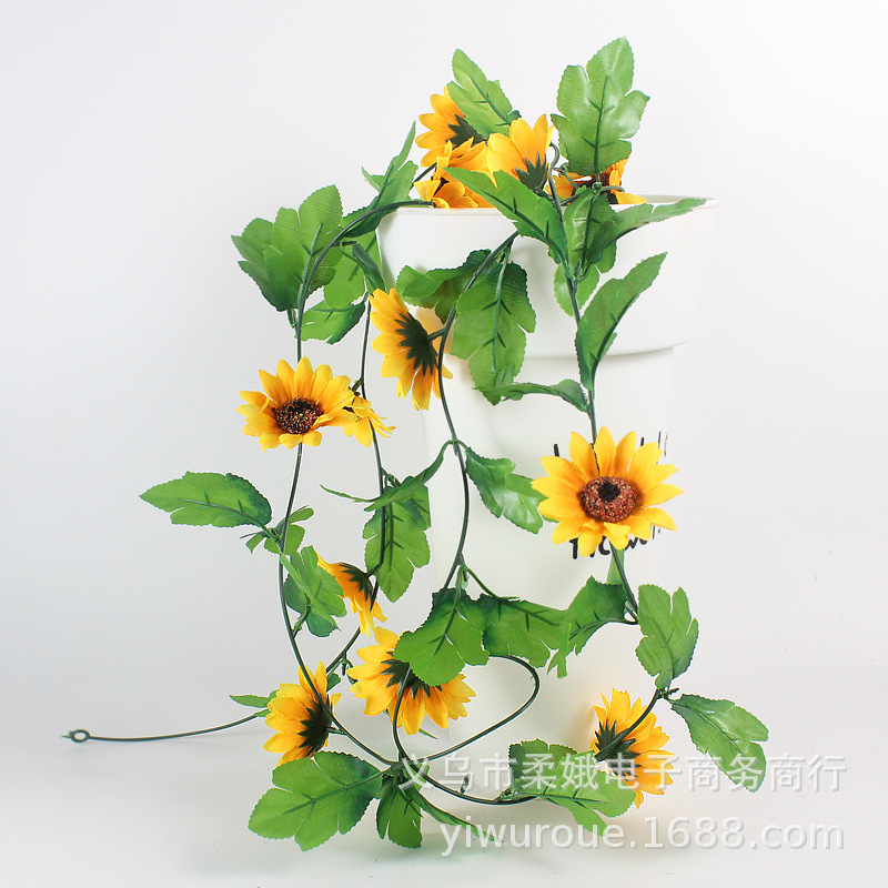 Hiasan Gantung Pintu Lengkungan Balkon Ruang Tamu Hiasan Bunga Palsu Rotan Bunga Matahari Imitasi Amazon Lintas Batas Model Baru