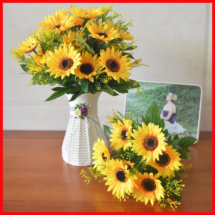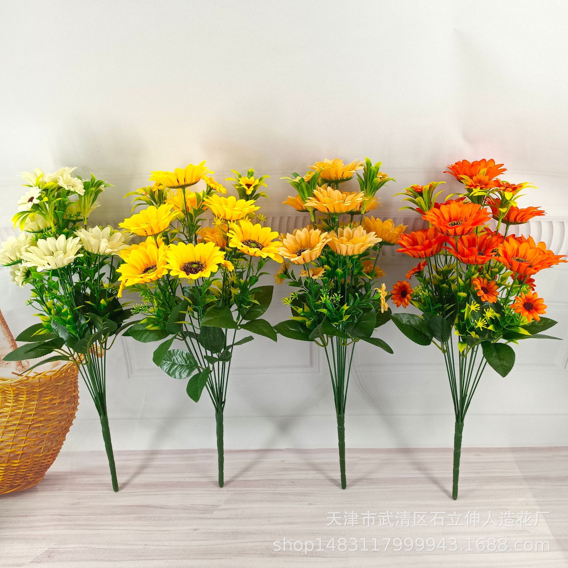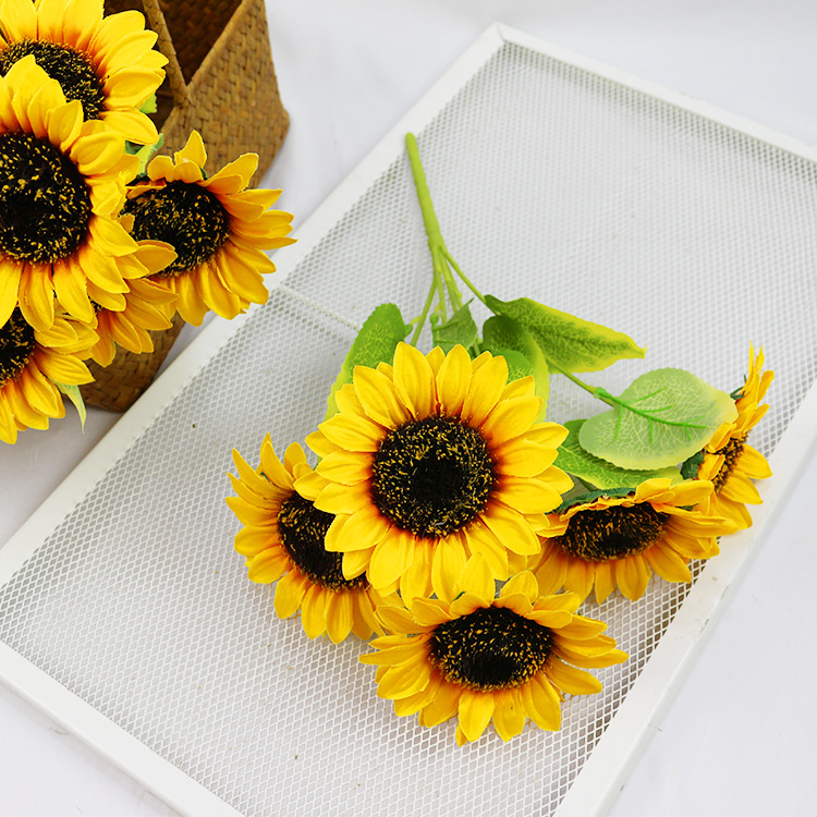 Xuanzhigu buket bunga buatan, lintas batas, gagang bunga matahari tujuh garpu buatan, dekorasi teknik dalam ruangan dan luar ruangan