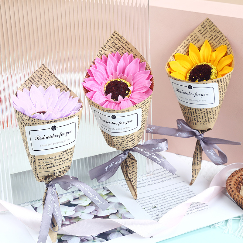 Buket bunga matahari Mini baru buket kecil bunga sabun untuk pacar perempuan hadiah liburan dengan hadiah tangan