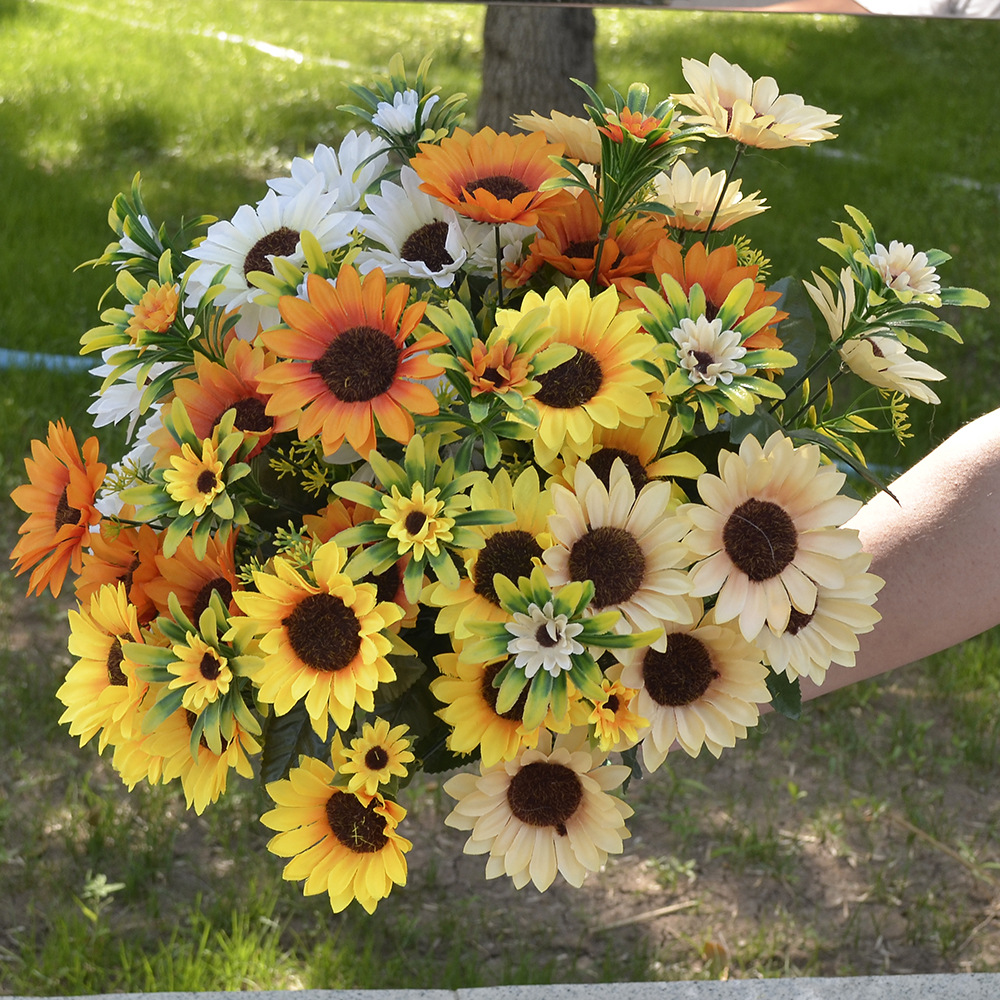 22-head bunga matahari buatan dekorasi pernikahan bunga matahari buatan buket kecil bunga palsu bunga sutra grosir