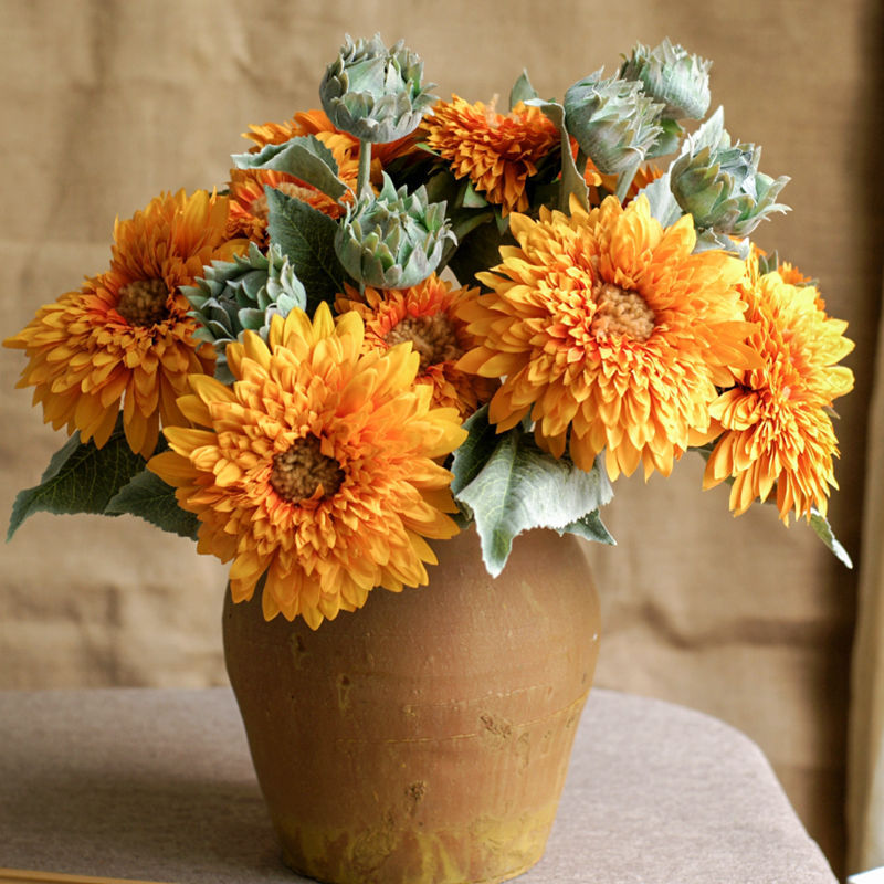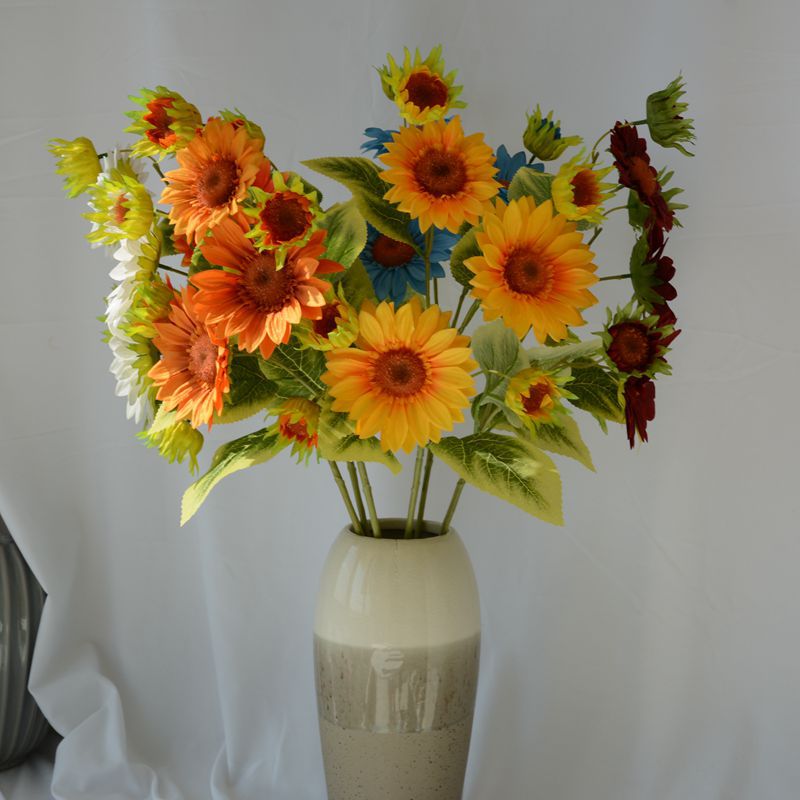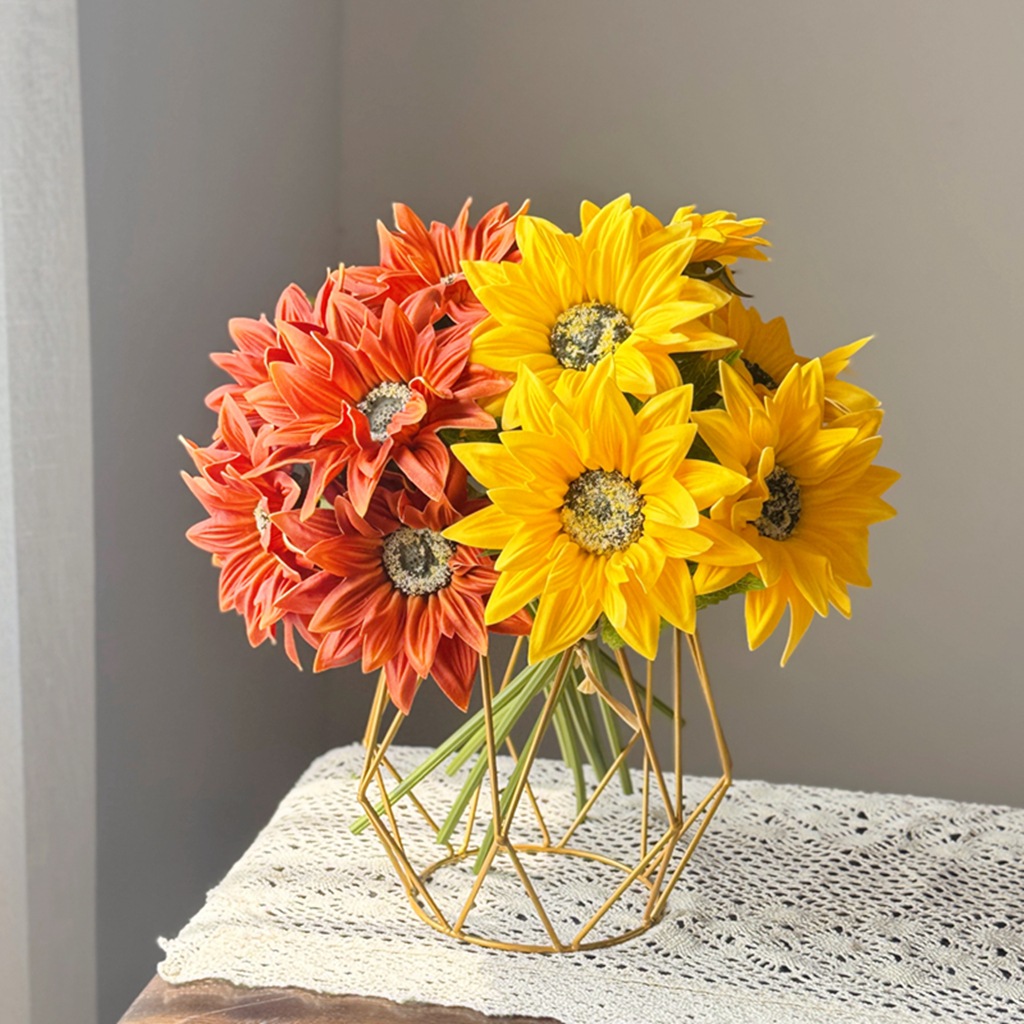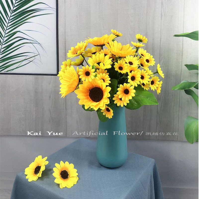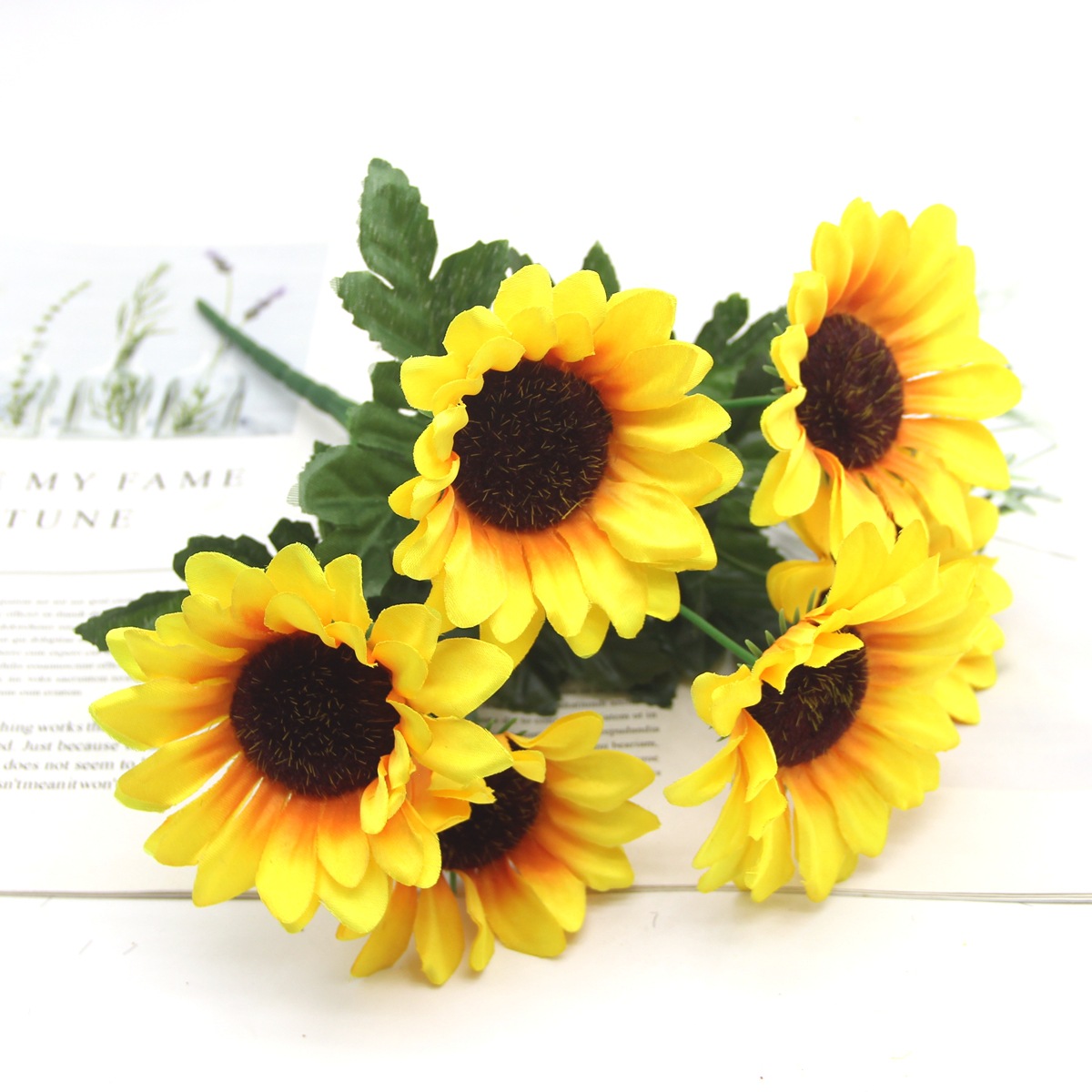 Bunga matahari buatan, 7 kepala bunga matahari gaya Eropa pengaturan bunga pernikahan bunga palsu tampilan ruang tamu