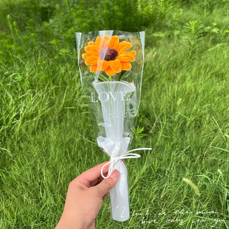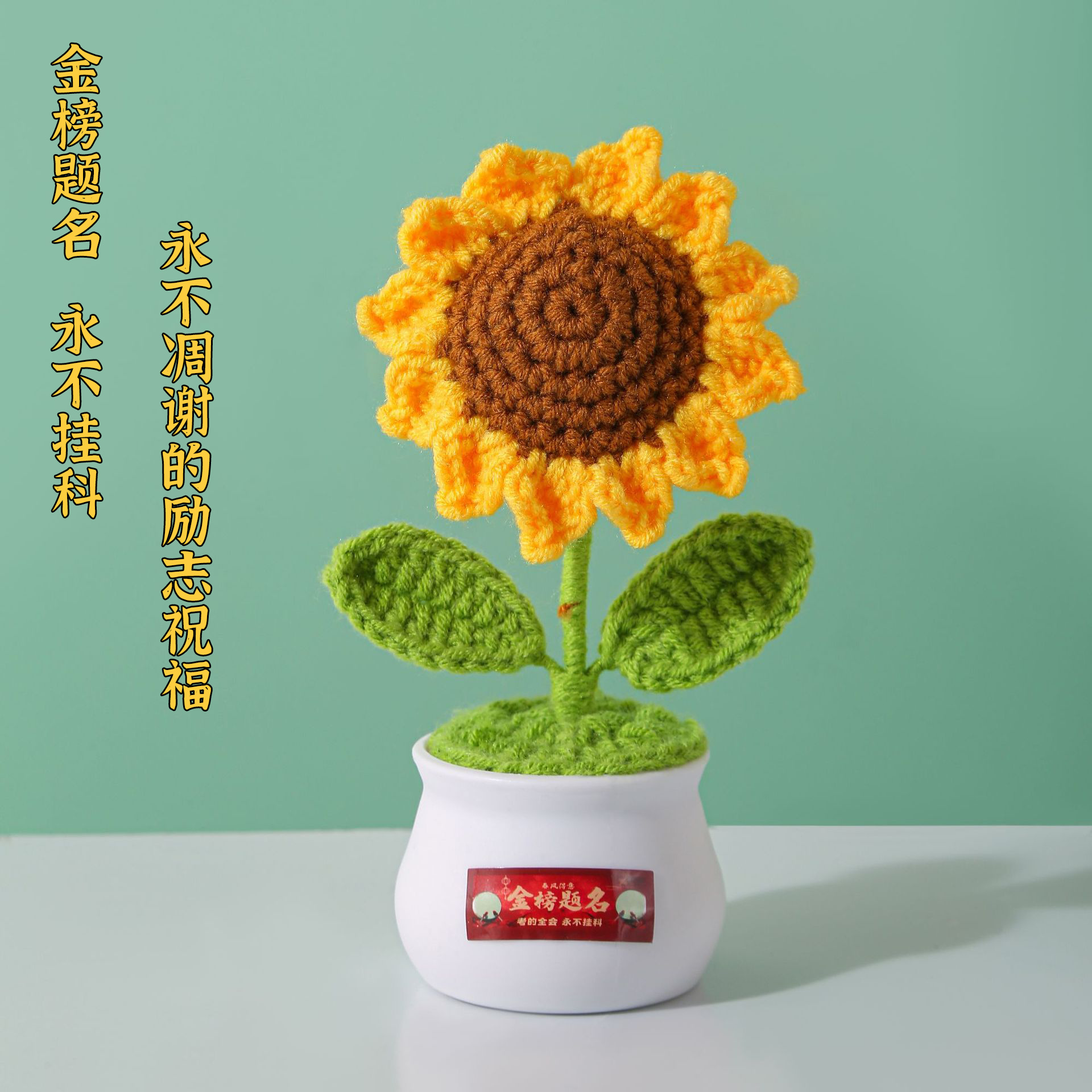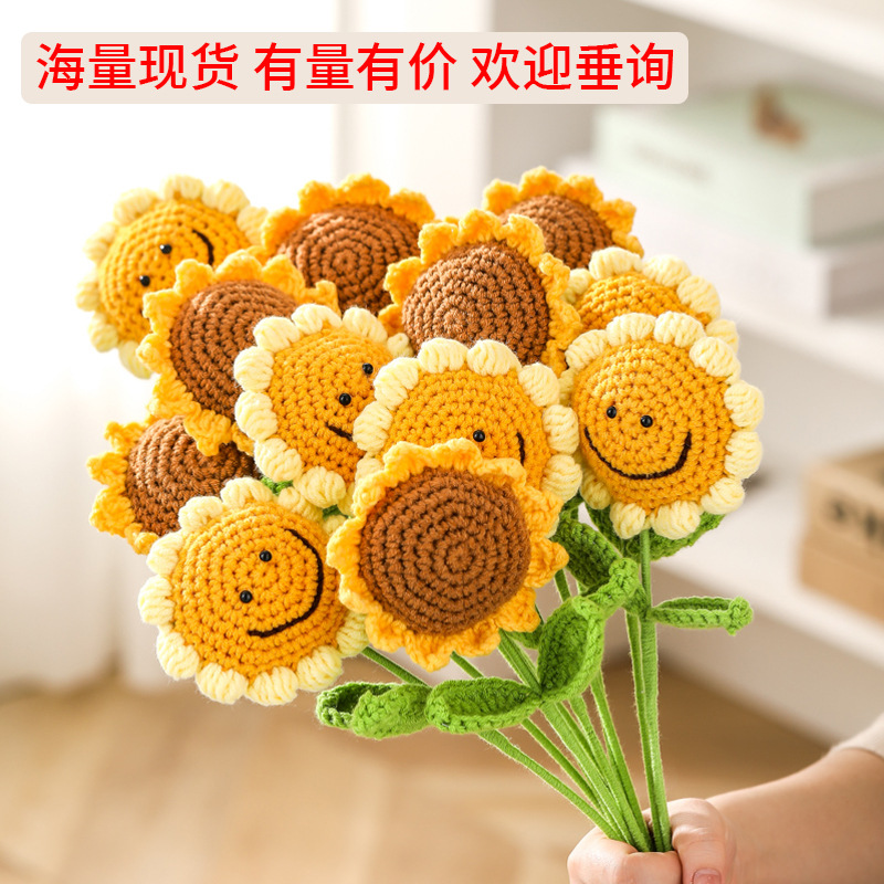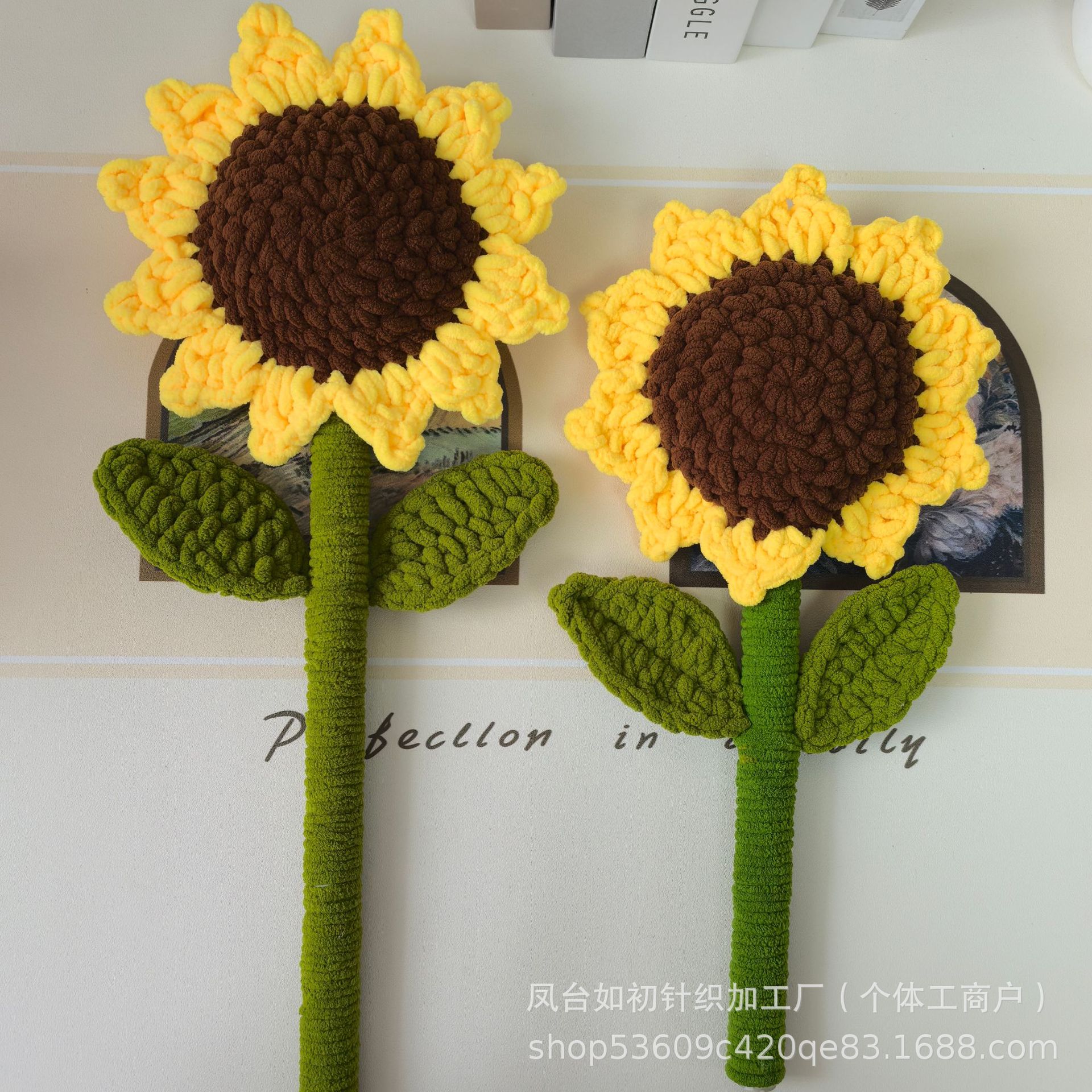 Produk jadi bunga rajutan buatan tangan benang es bunga bunga matahari besar bunga matahari bunga wol buket bunga imitasi hadiah hari guru