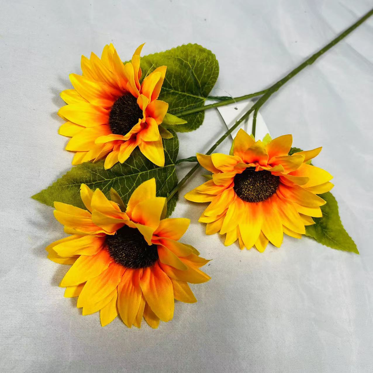 Grosir Pabrik bunga matahari 3-kepala cabang tunggal dekorasi meja makan ruang tamu dekorasi karangan bunga pernikahan kualitas tinggi