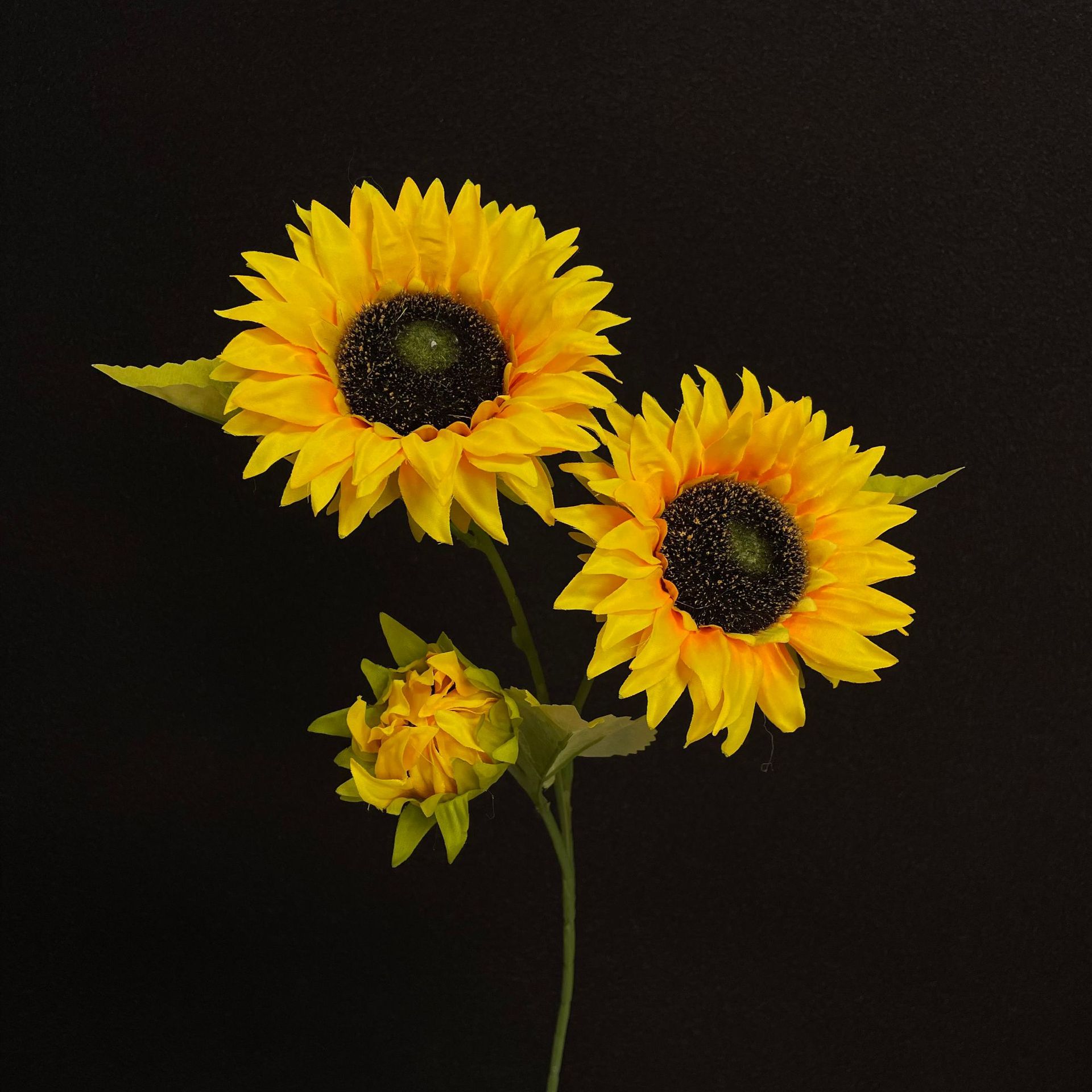 Bunga matahari tiga kepala besar, bunga buatan lembut dekorasi taman luar ruangan teknik bunga sutra