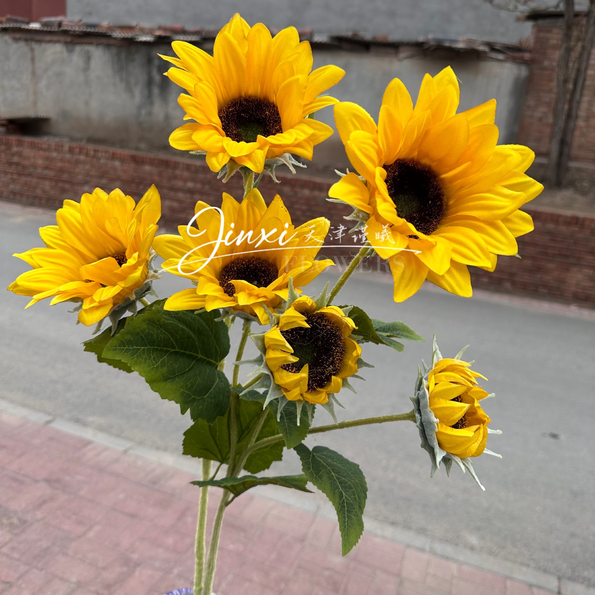 Bahan peledak lintas batas 5 kepala perasaan PU bunga matahari tandan bunga buatan sumber pabrik grosir pernikahan lembut rumah