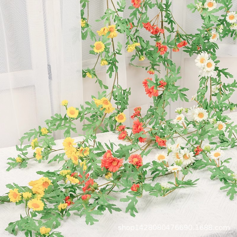 Desain Baru Bunga Bunga Daisy Kecil Imitasi Bunga Matahari Kecil Imitasi Rotan Rotan Rotan Gantung Pipa Air Langit-Lilit Dekorasi Dalam Ruangan Hijau