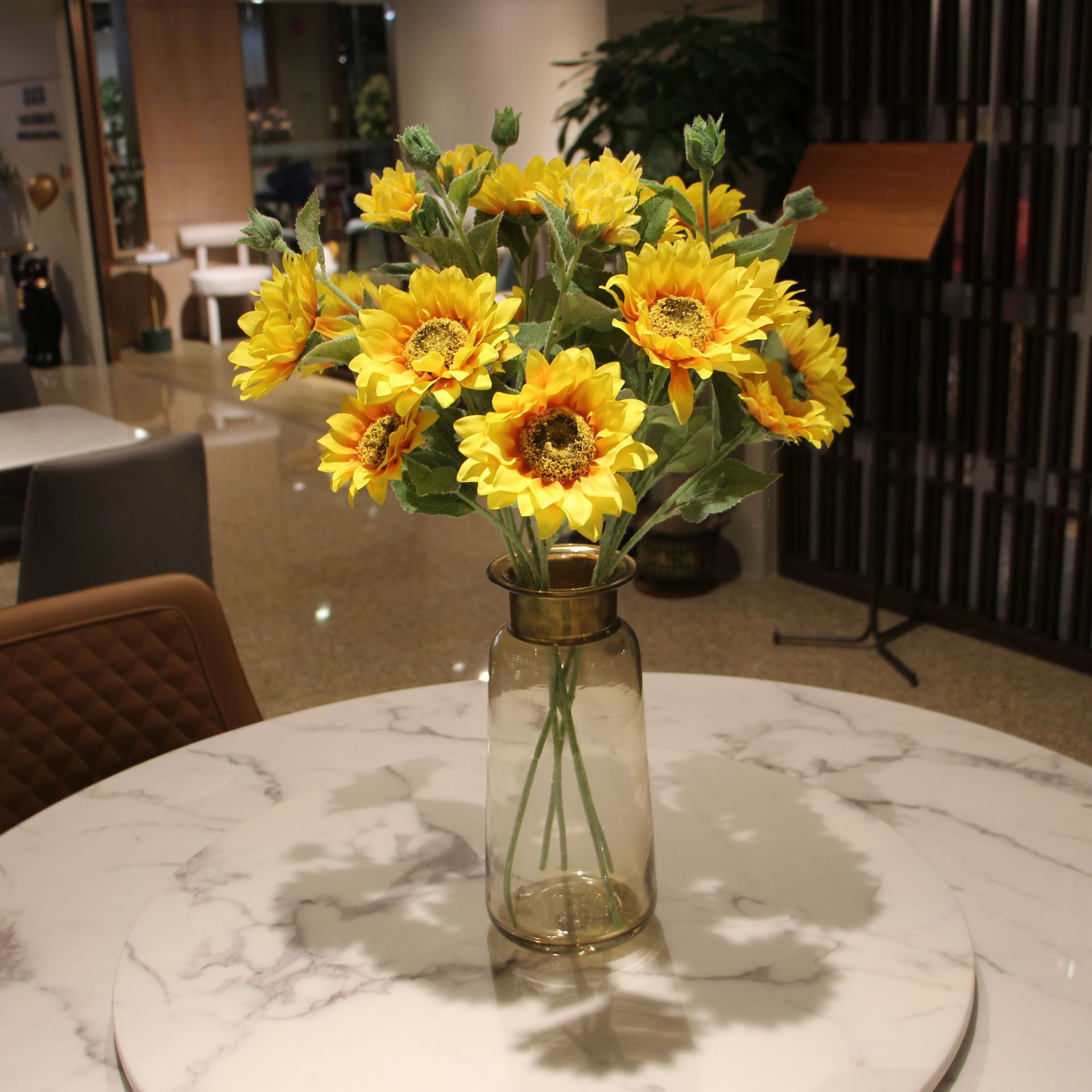 Bunga matahari buatan, alat peraga dekorasi pernikahan, bunga matahari tunggal gaya Eropa ruang tamu meja makan