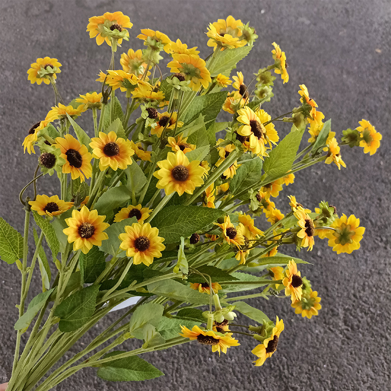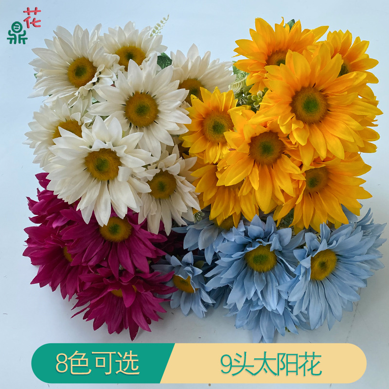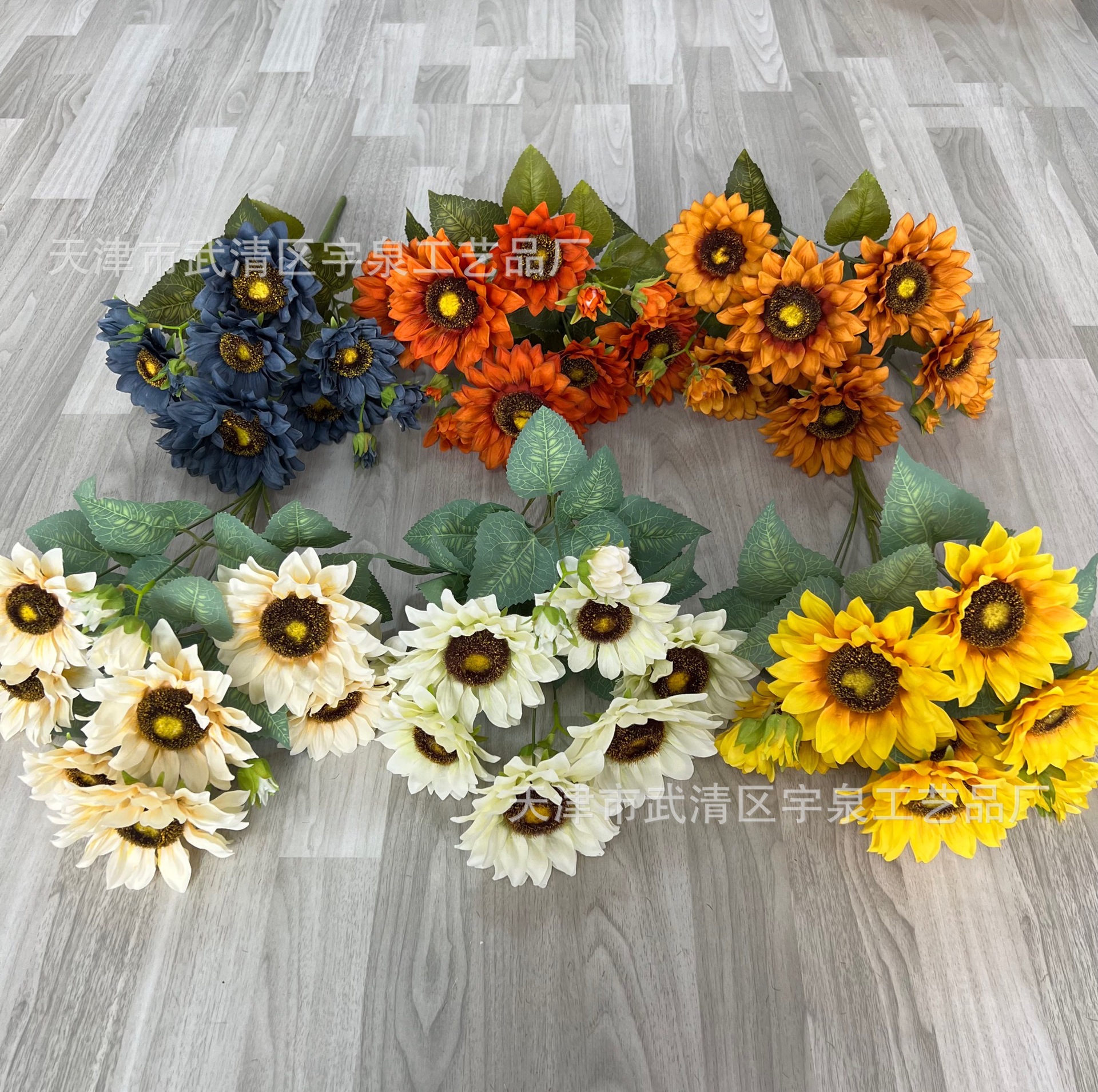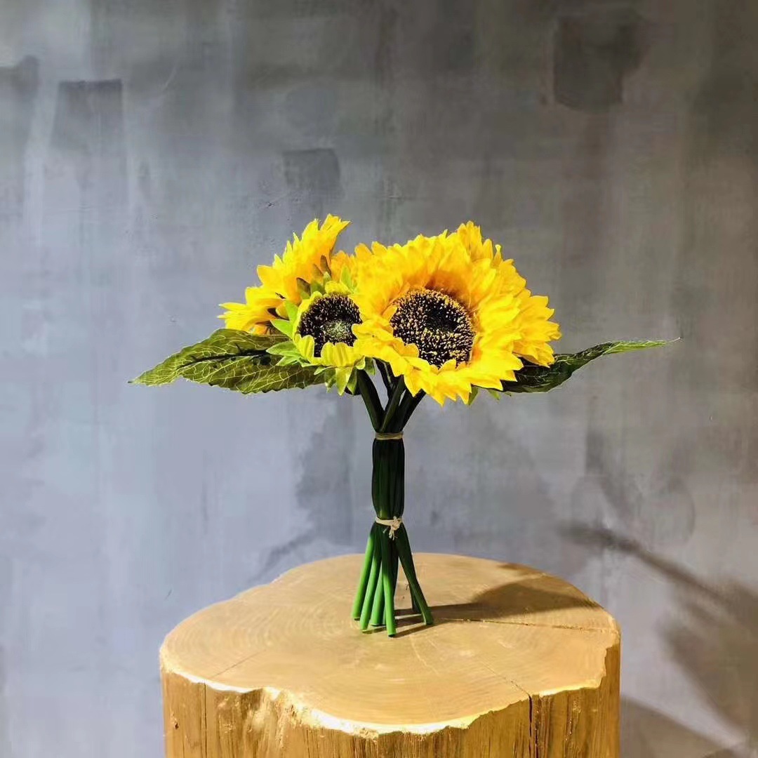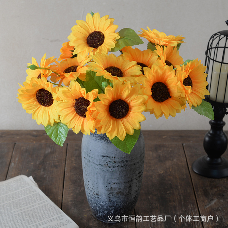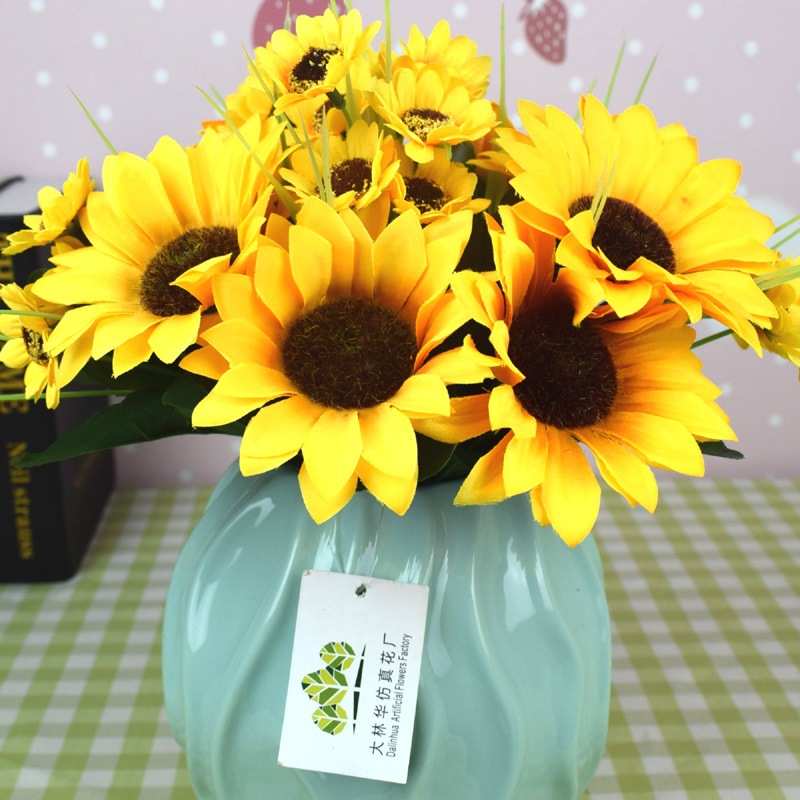 Pabrik bunga buatan grosir bunga matahari menangani bundel rumah ruang tamu dekorasi hotel bunga palsu sutra bunga hijau tanaman perdagangan luar negeri