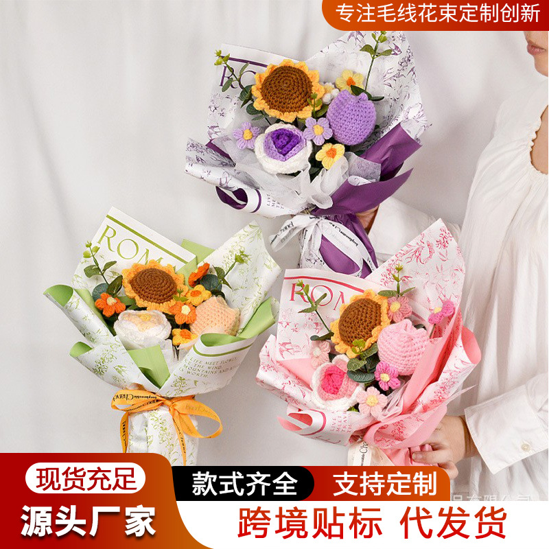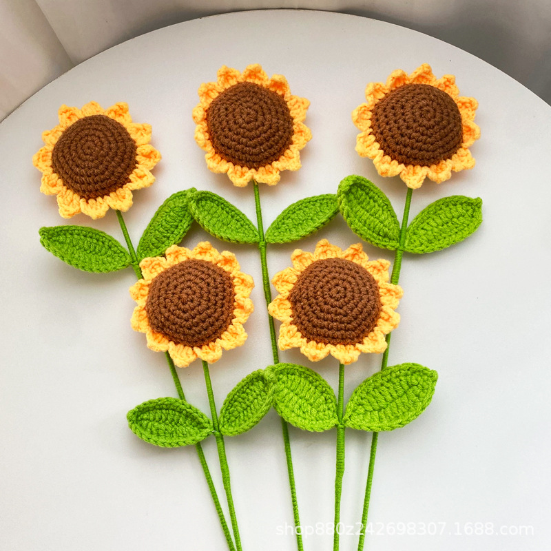 Bunga Rajutan Bunga Bunga Matahari Mawar Bunga Wol Tulip Produk Jadi Buket Bunga Imitasi Wisuda