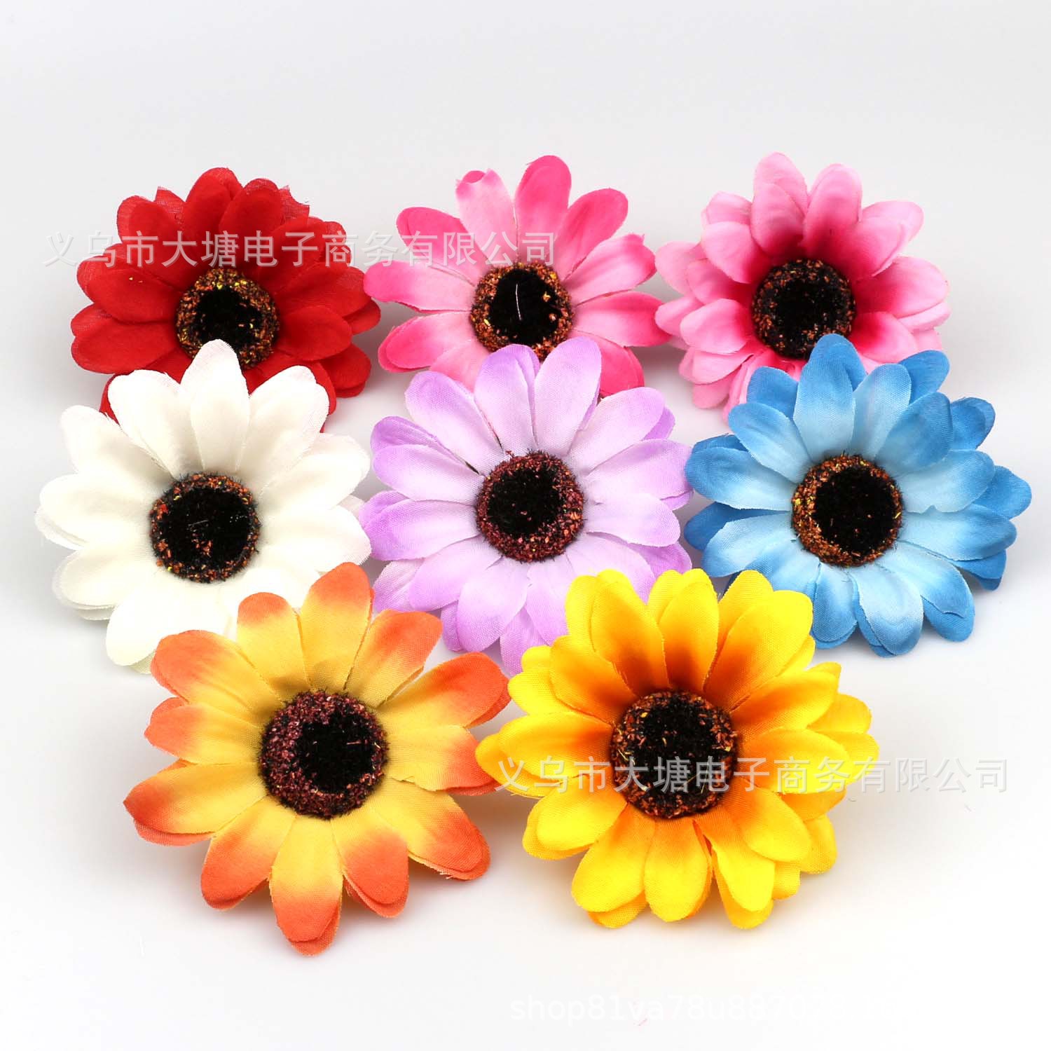Kepala bunga matahari buatan, hiasan topi jerami rambat bunga buatan tangan DIY 8cm