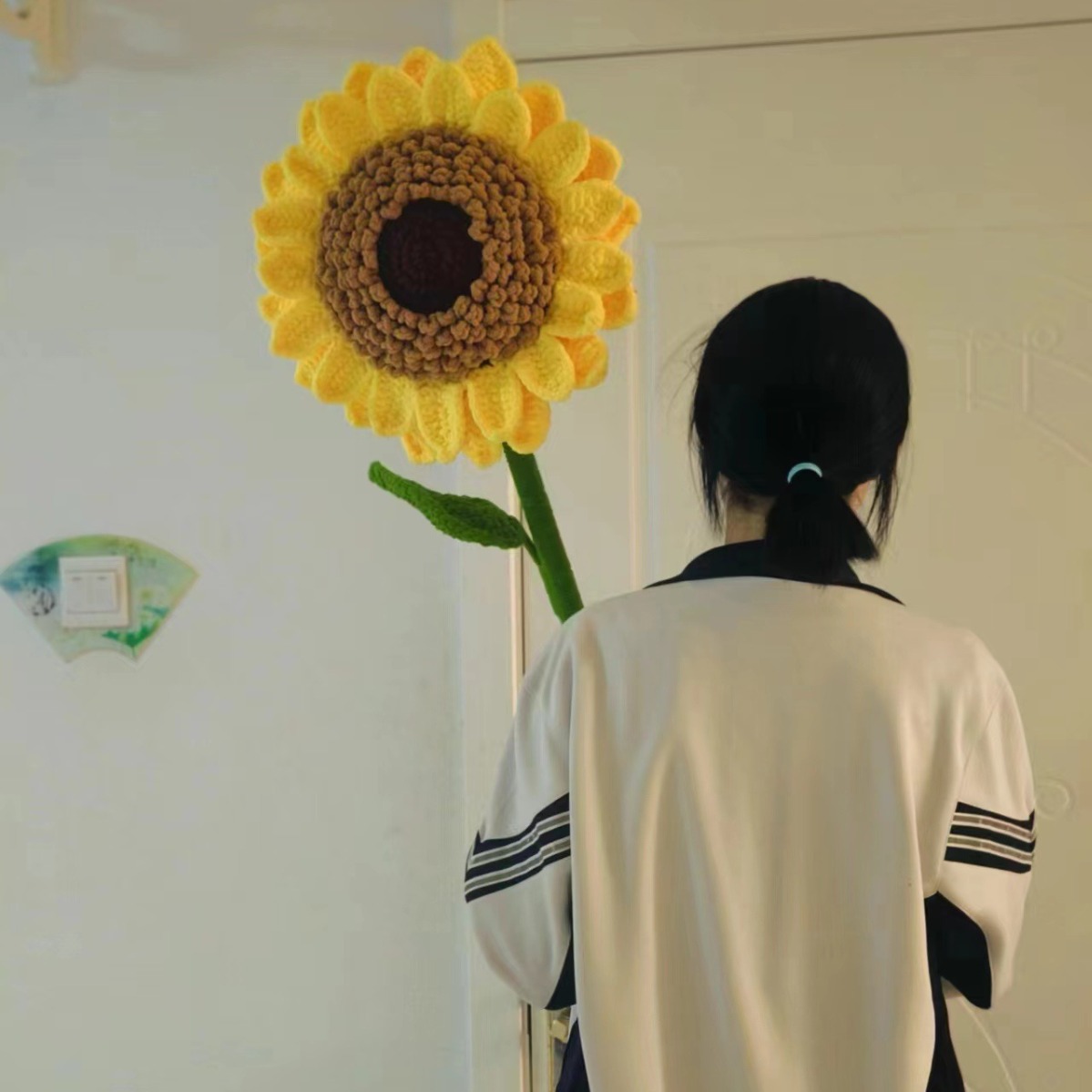 Pabrik produk selesai grosir buatan tangan rajutan raksasa bunga matahari buatan Properti dekorasi rumah buket dekorasi