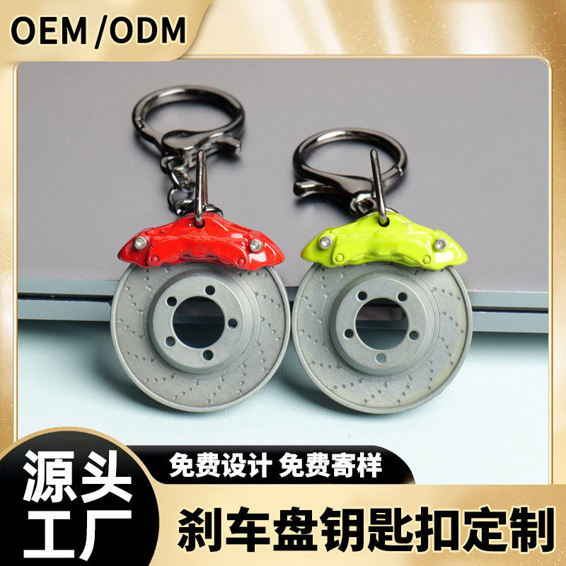 Gantungan kunci mobil kaliper modifikasi kreatif, gantungan kunci mobil bantalan rem hub roda berputar, gantungan kunci hadiah kecil