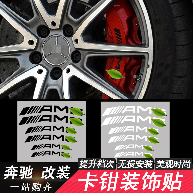 Lintas batas cocok untuk Mercedes Benz AMG stiker kaliper rem stiker mobil tahan suhu tinggi dimodifikasi stiker dekorasi hub roda pribadi