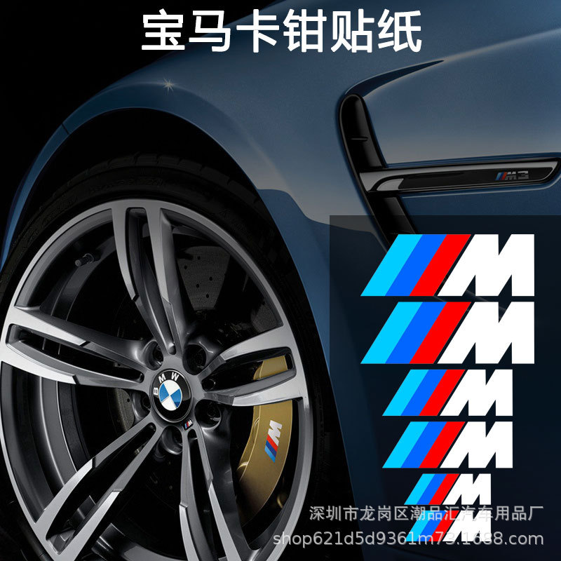 Berlaku untuk Bao M stiker kaliper modifikasi rem mobil BMW stiker kaliper mobil kepribadian 3 warna M dekorasi standar stiker mobil kasual