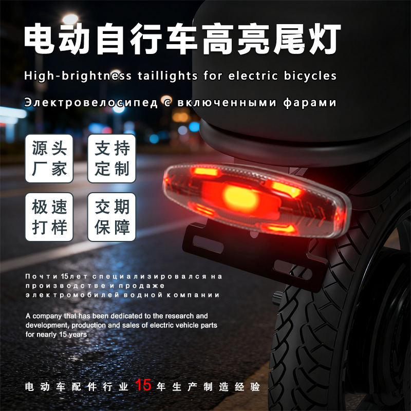 Lampu belakang berkedip mobil mengemudi 48v14-inci lampu rem sepeda elektrik lampu mengemudi aksesori mobil modifikasi