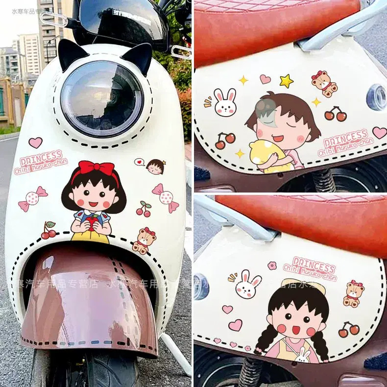 Stiker Mobil Listrik Sepeda Motor Stiker Goresan Tahan Air untuk Dekorasi Tubuh Kartun Lucu Bola Kecil Cherry Stiker Mobil Baterai Emma