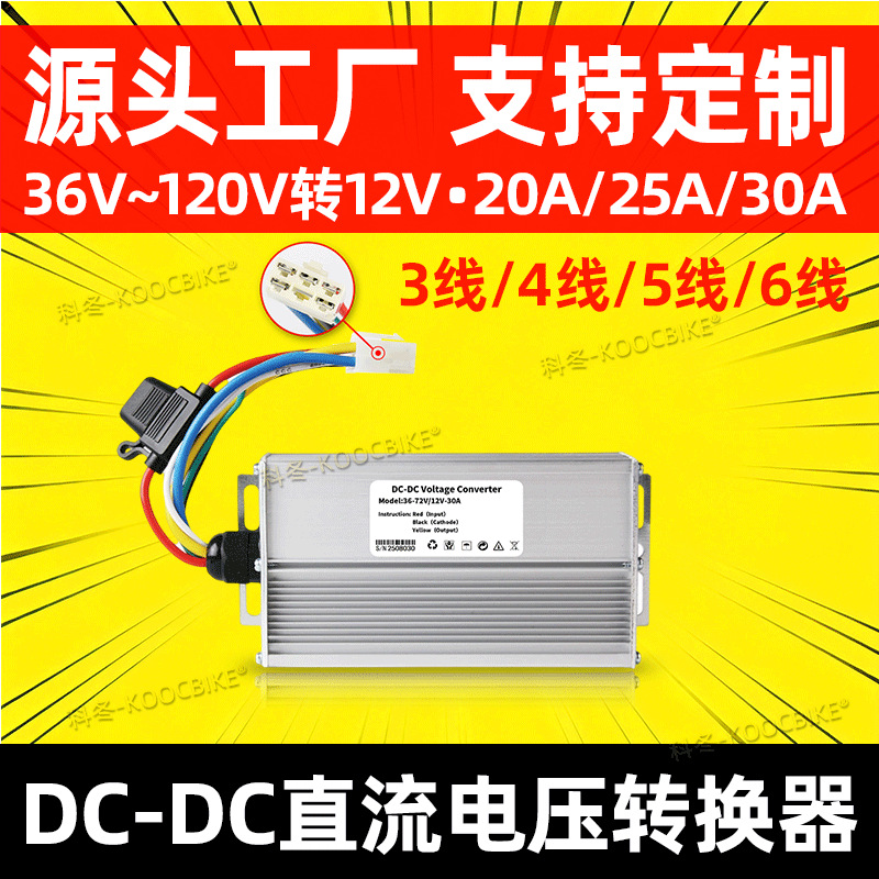 Konverter kendaraan listrik 36V48V60V72V ke 12V10A20A untuk baterai mobil, sepeda roda tiga, konversi roda empat, produsen