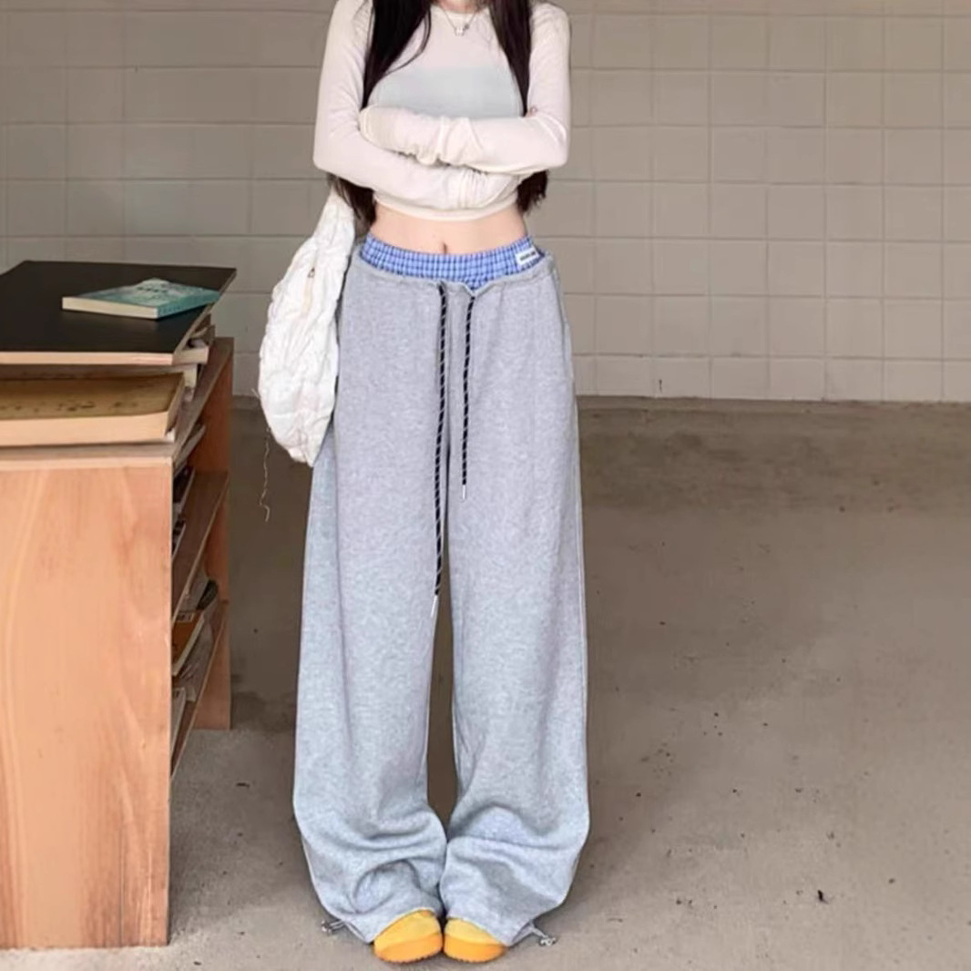 Celana Sweatpants Kasual Modis Olahraga Pinggang Ganda Sense Desain Produk Tersedia MM Celana Panjang Kaki Lebar Wanita Model Musim Semi Gaya Amerika