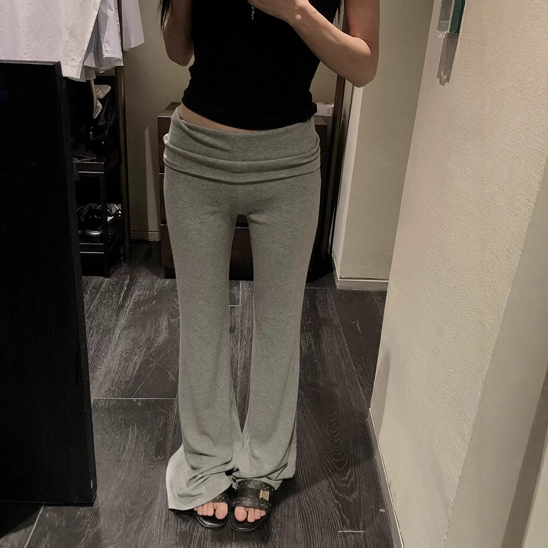 YOLOSHOP [dari mulut ke mulut celana] celana rajutan dengan perasaan jatuh terlihat langsing celana pel lantai celana panjang sedikit lilit pinggang rendah