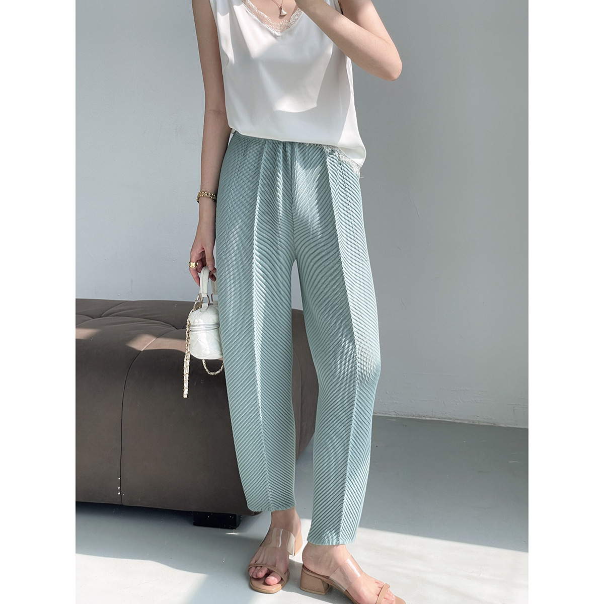 Celana Kerja Wanita Parasut Gaya Pedas Super Cantik Wanita Musim Panas 2025 Celana Kasual Kaki Lebar Lipit Model Tipis Trendi