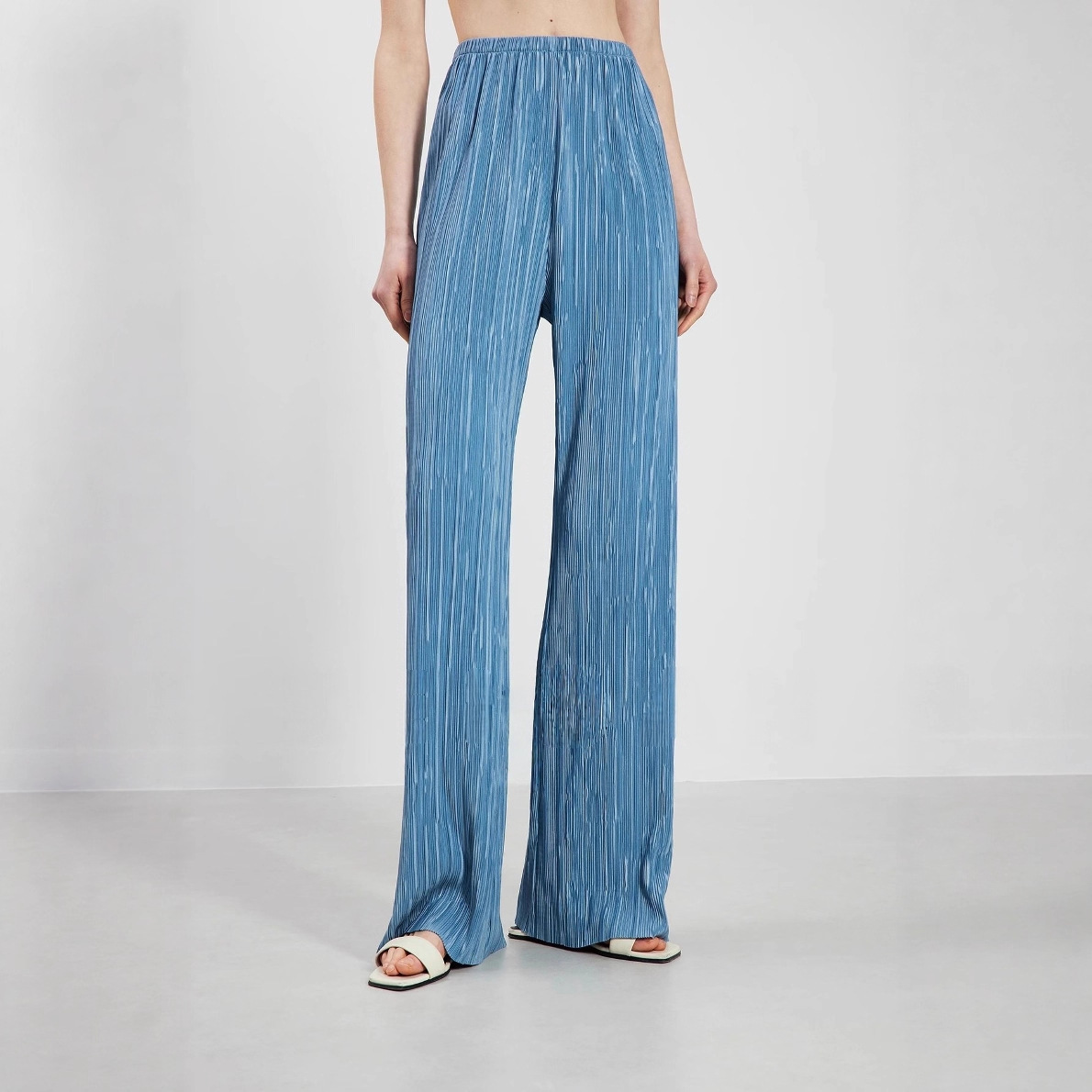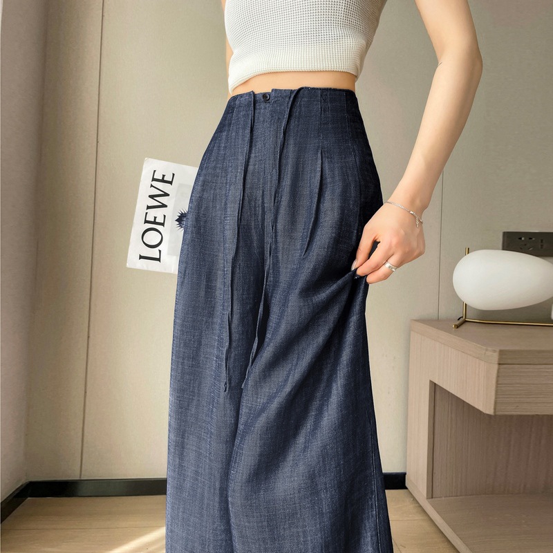 La Xia Bell Celana Kaki Lebar Linen Sutra Es Warna Biru Tipis Wanita Musim Panas Celana Lurus Santai Tabung Lurus Katun Linen Model Tipis